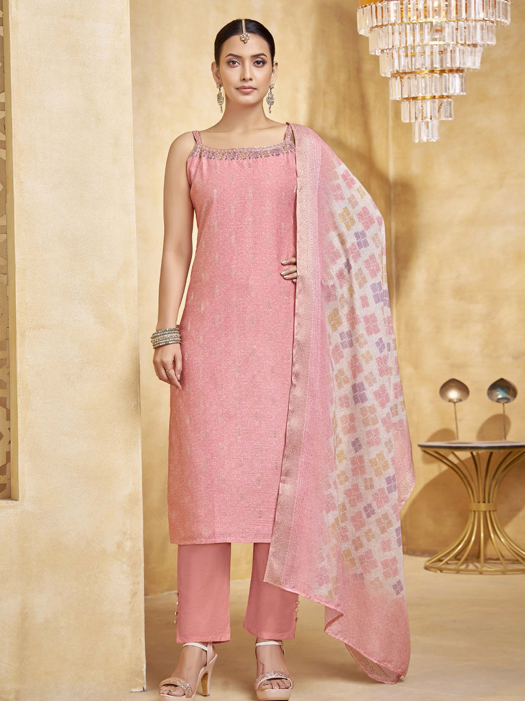Pink and Majenta color Salwar Kameez in Silk fabric with Bugle Beads, Weaving work