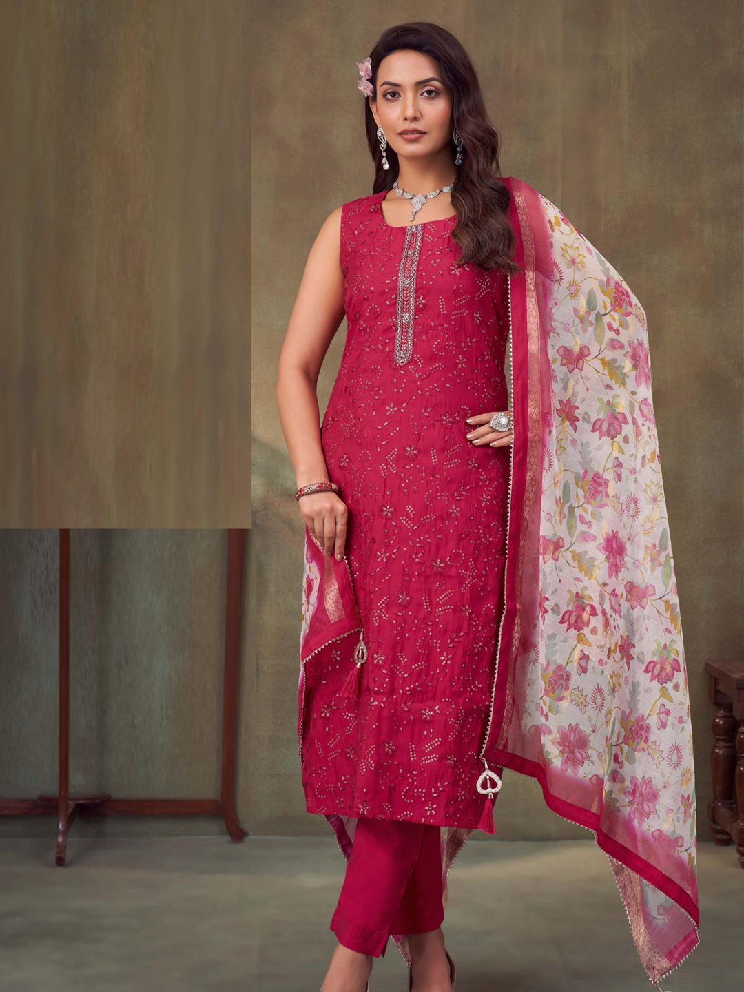 Pink and Majenta color Salwar Kameez in Silk fabric with Embroidered, Sequence, Thread work
