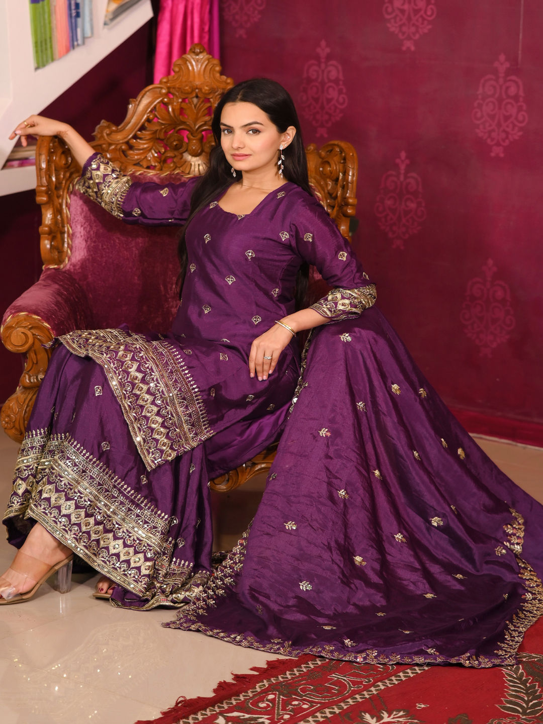 Purple and Violet color Salwar Kameez in Silk fabric with Embroidered, Sequence, Thread work