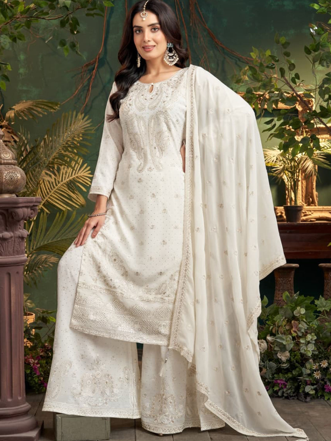 White and Off White color Salwar Kameez in Silk fabric with Embroidered, Sequence work