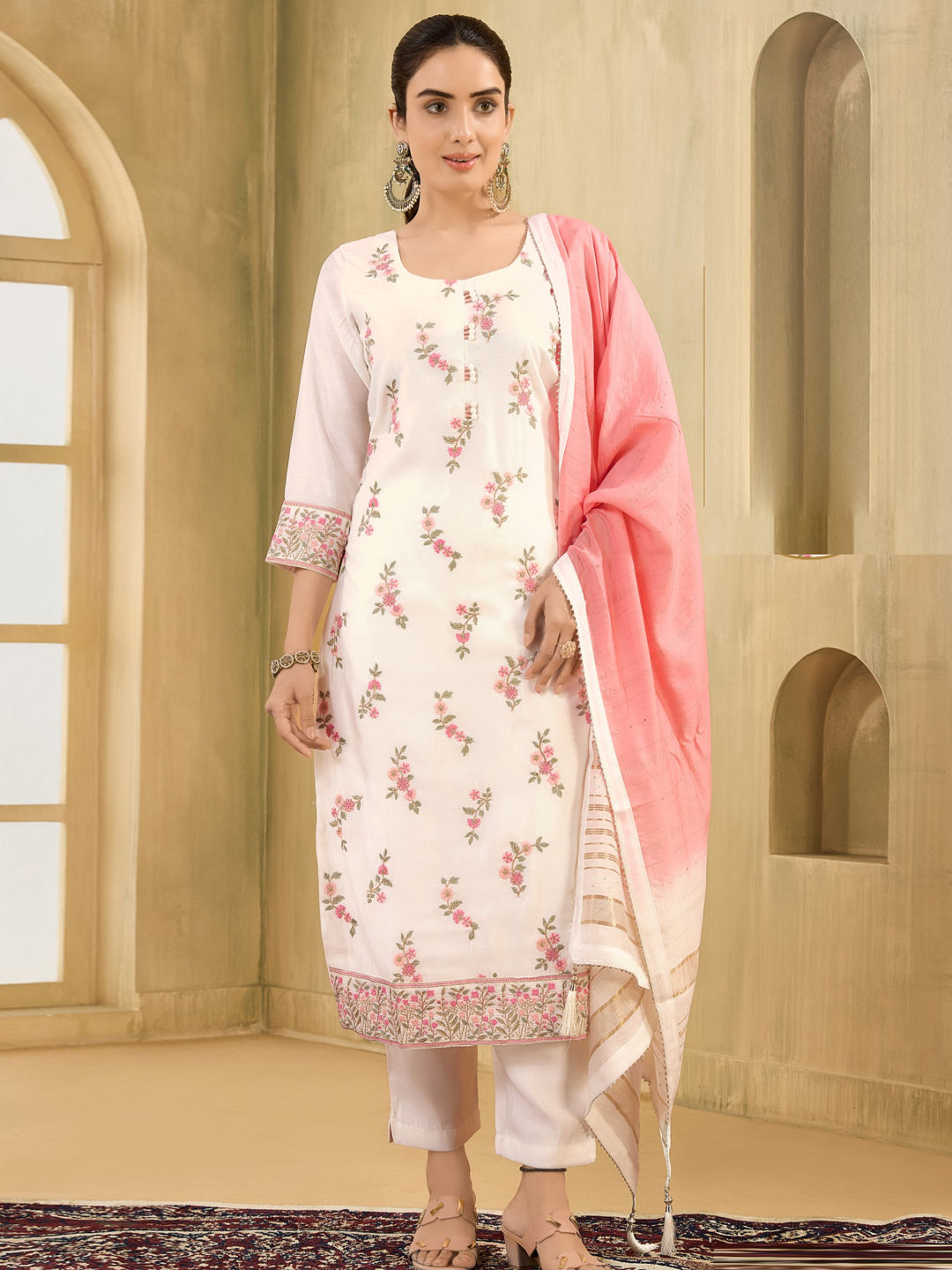 White and Off White color Salwar Kameez in Silk fabric with Embroidered, Resham, Sequence, Thread work