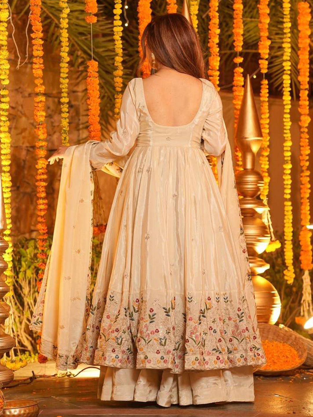 White and Off White color Salwar Kameez in Silk fabric with Embroidered work