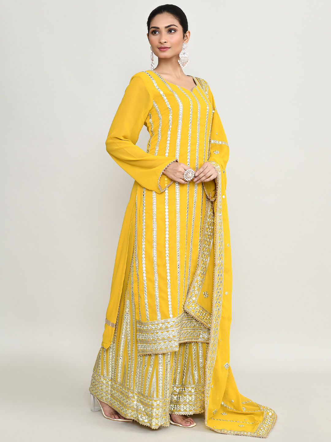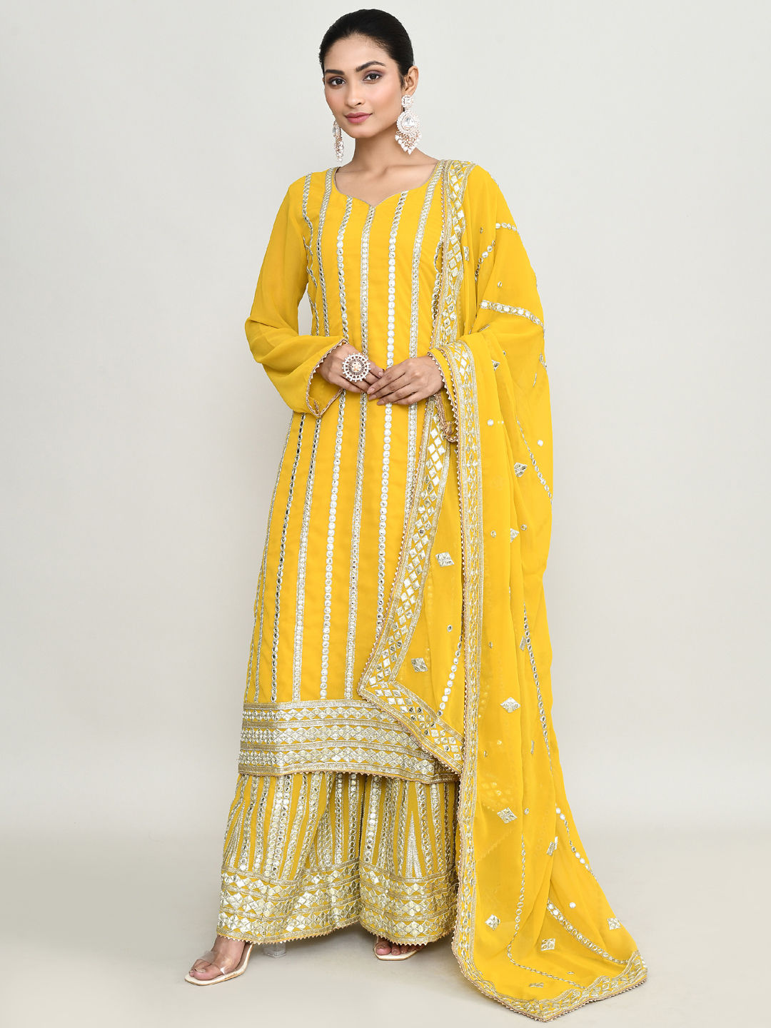 in Yellow with Embroidered work