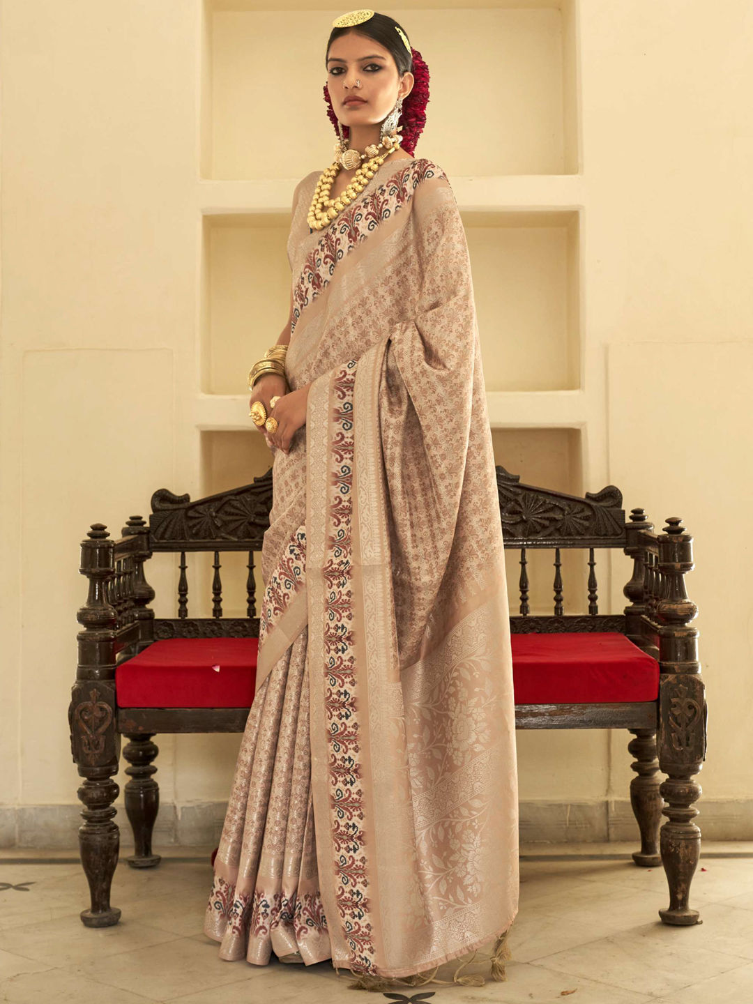 Beige and Brown color Saree in Silk fabric with Weaving, Zari work
