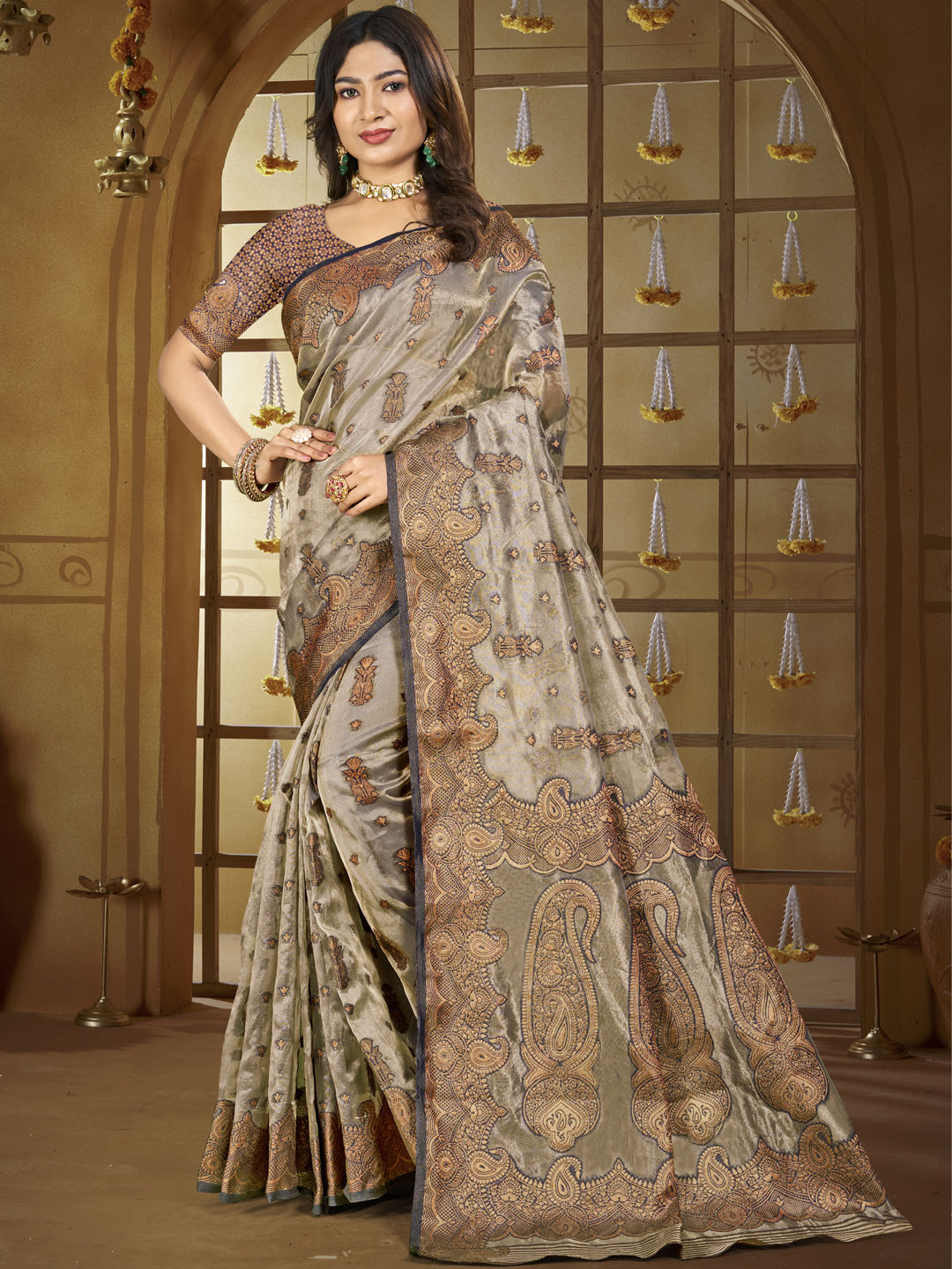 Beige and Brown color Saree in Silk fabric with Weaving, Zari work