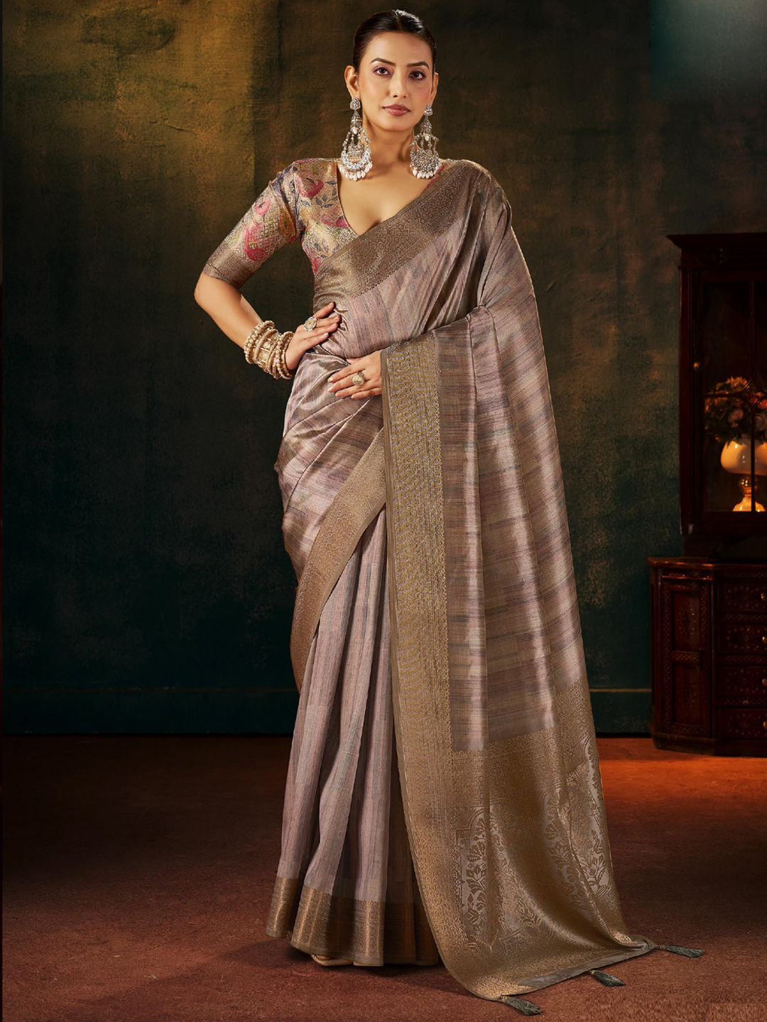 Beige and Brown color Saree in Silk fabric with Weaving work