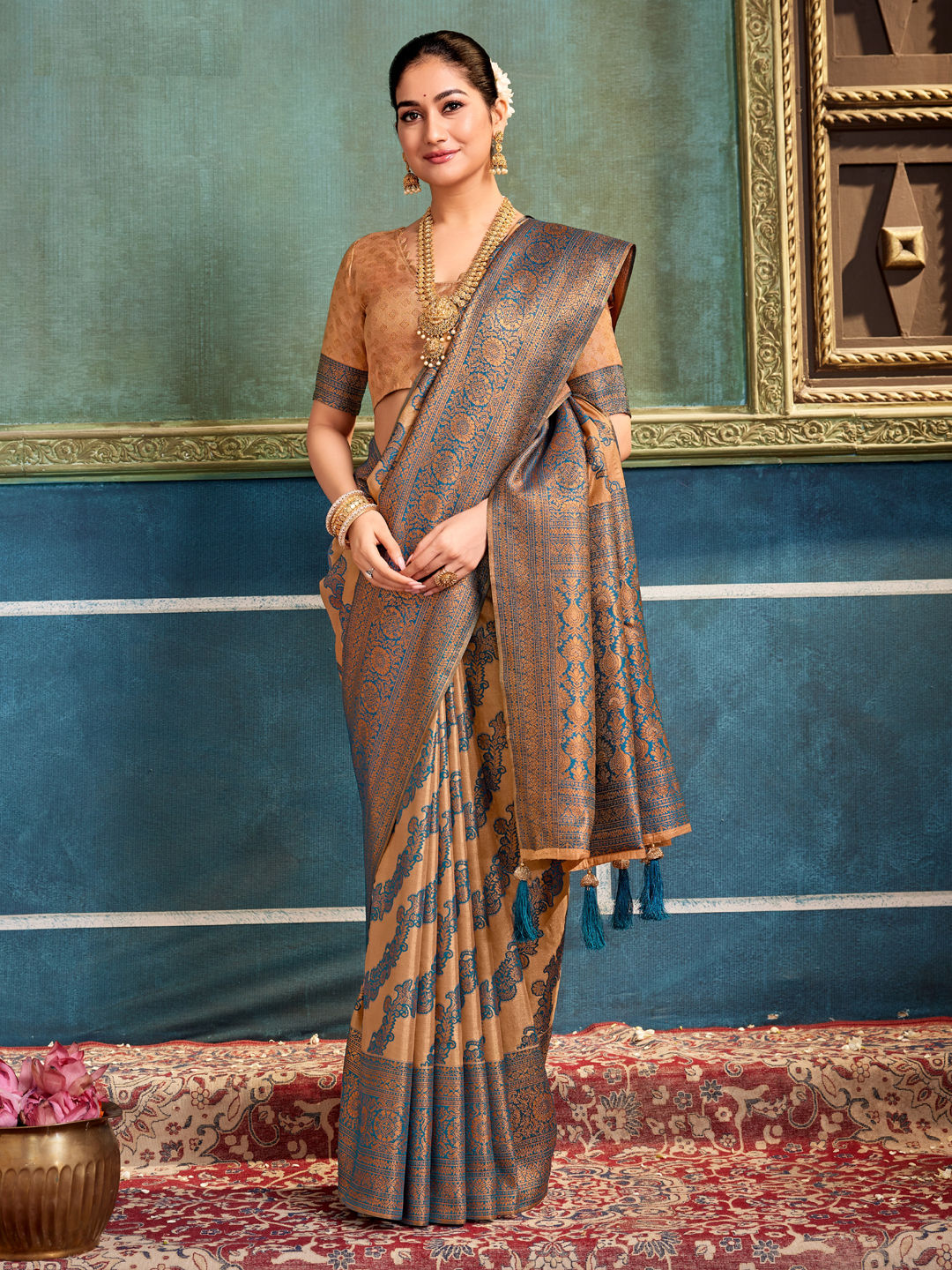 Beige and Brown, Blue color Saree in Silk fabric with Weaving work