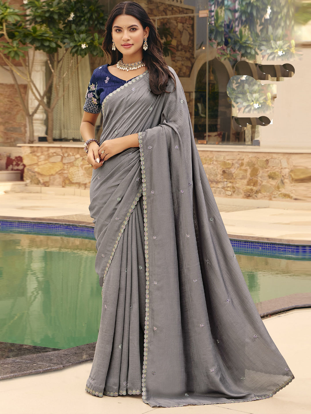 in Black and Grey with Embroidered work