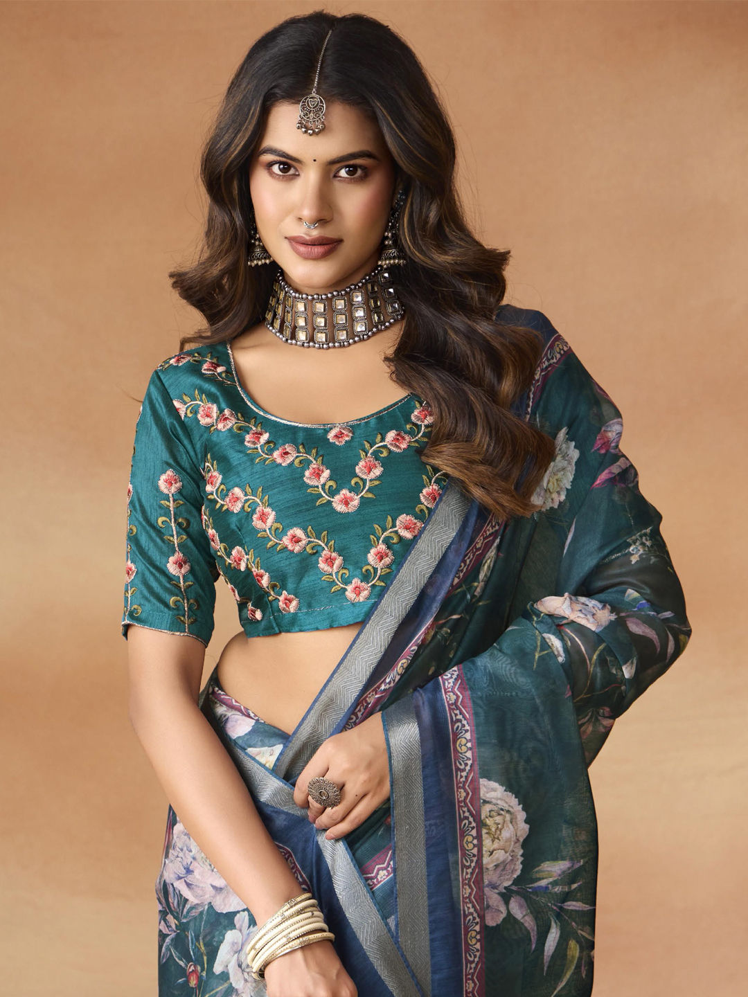 Silk Party Wear Saree in Pink and Majenta with Printed work