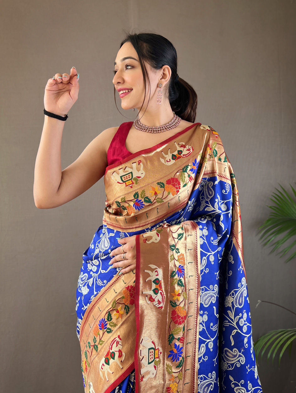 Blue color Saree in Silk fabric with Weaving, Zari work
