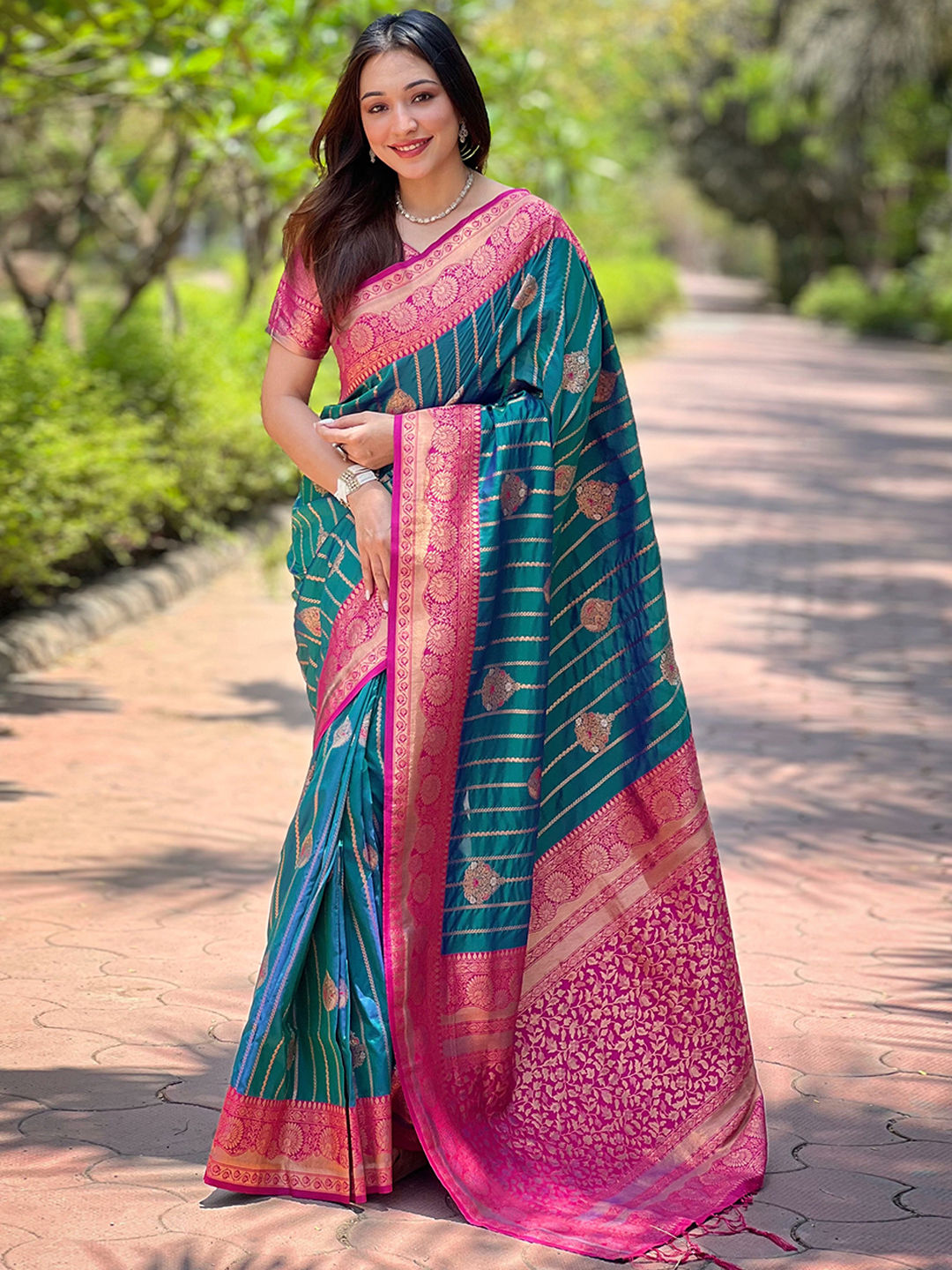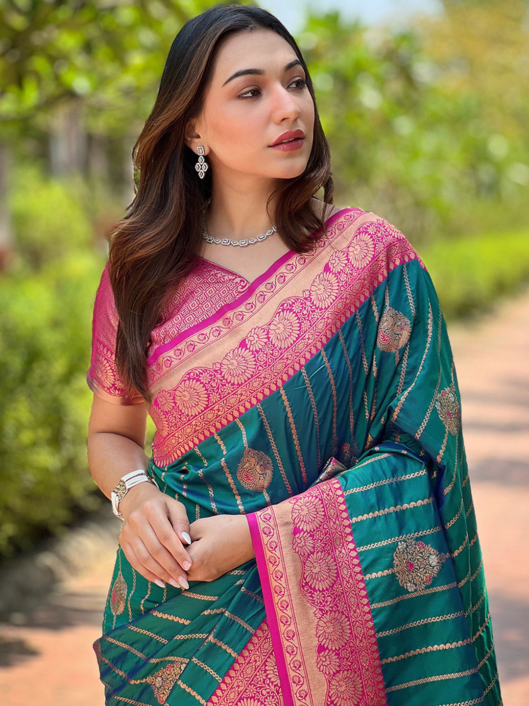 Silk Festive Saree in Pink and Majenta with Weaving work