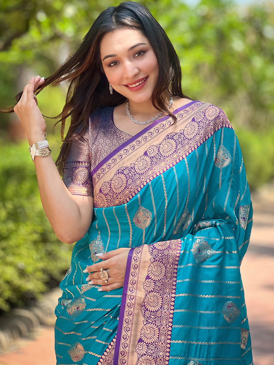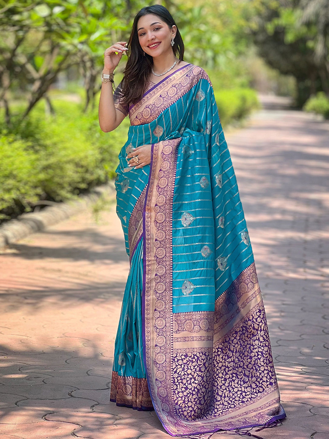 Blue color Saree in Silk fabric with Weaving, Zari work
