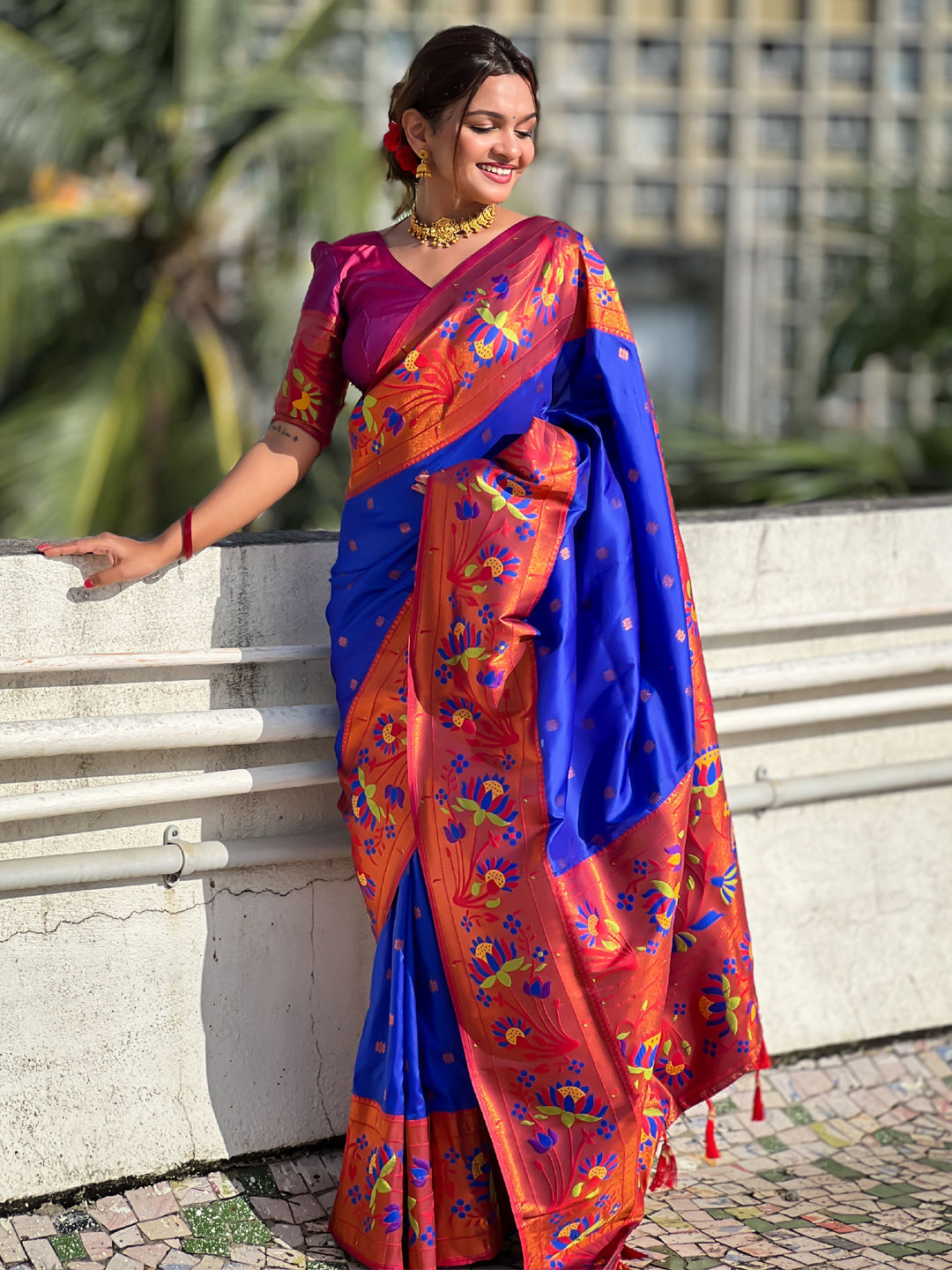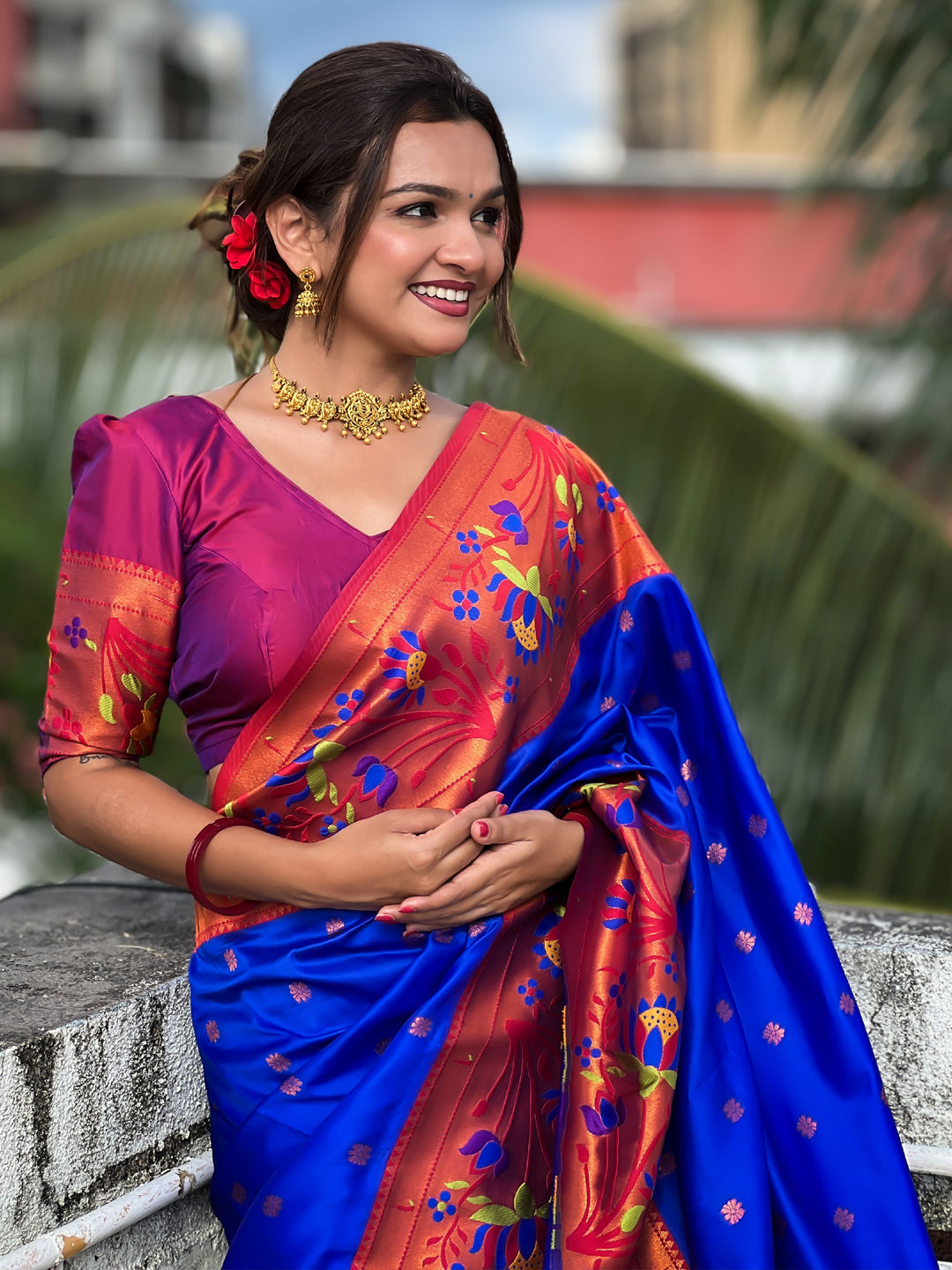 Blue color Saree in Silk fabric with Weaving, Zari work