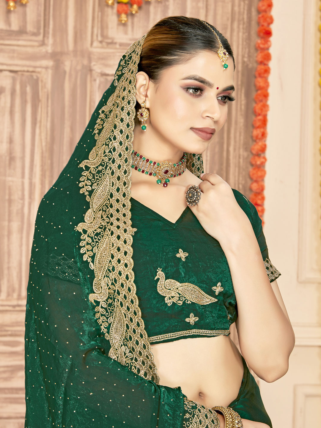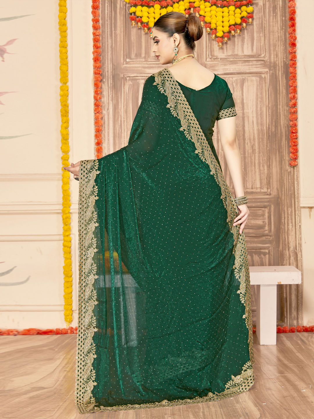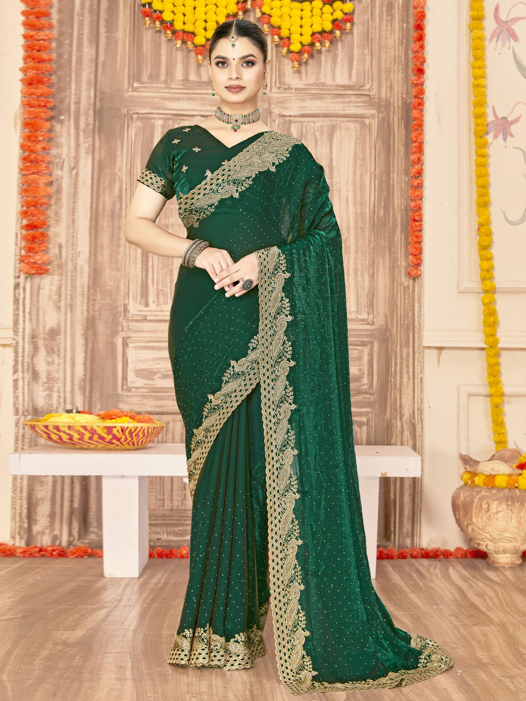 in Green with Embroidered work