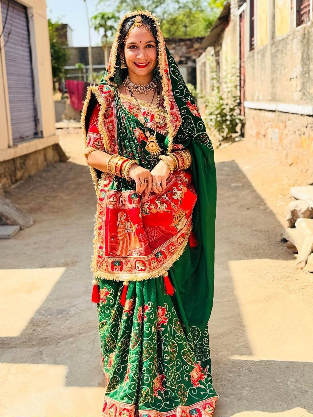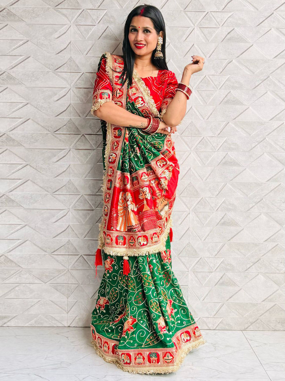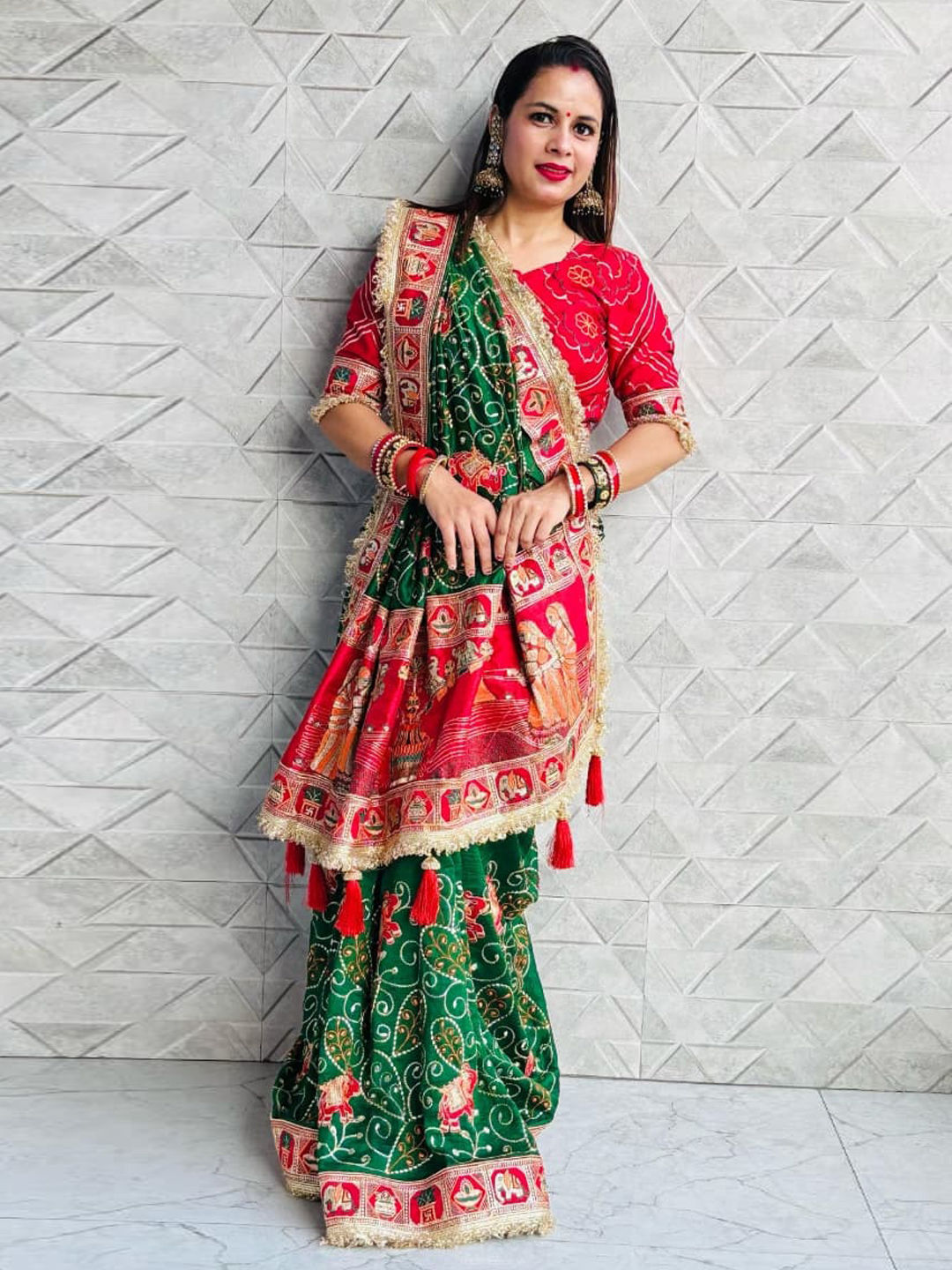in Green with Lace work