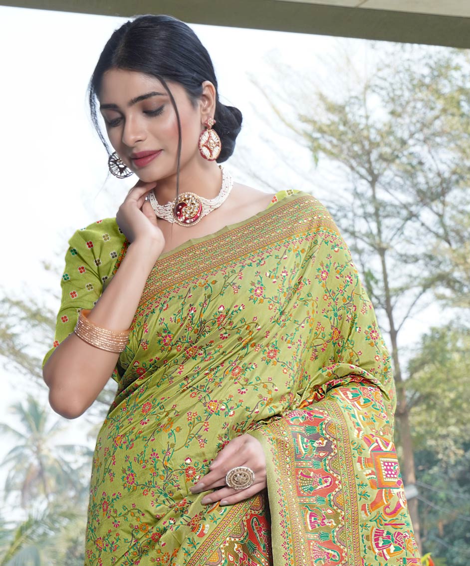 Green color Saree in Silk fabric with Printed work