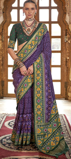 Silk Festive Saree in Green with Printed work