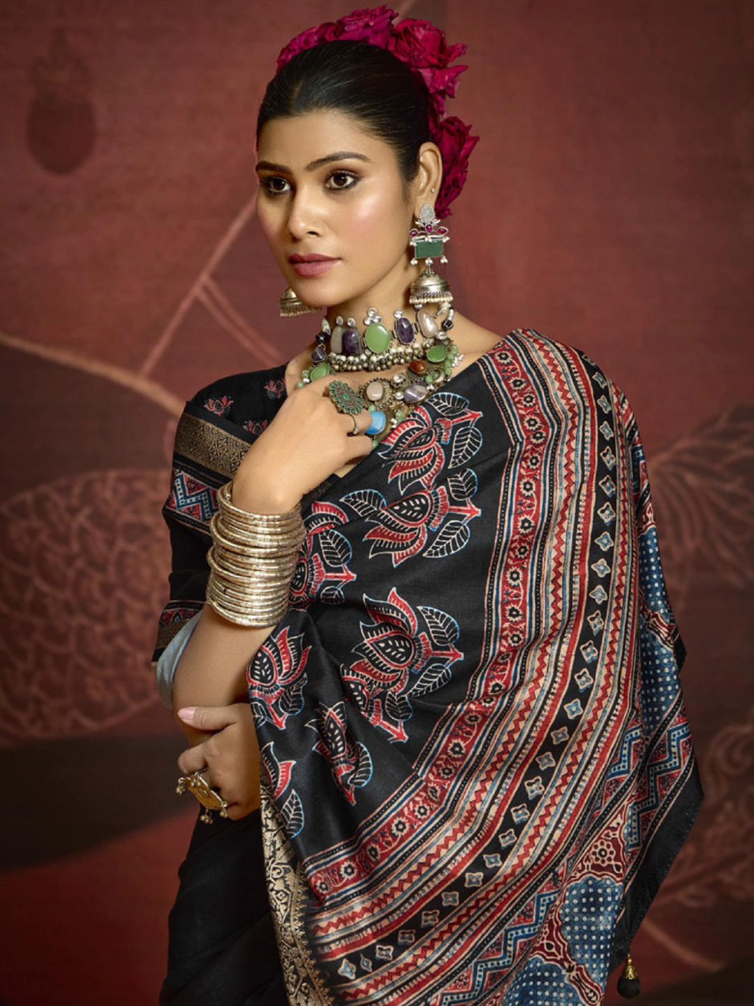 Silk Festive Saree in Red and Maroon with Printed work