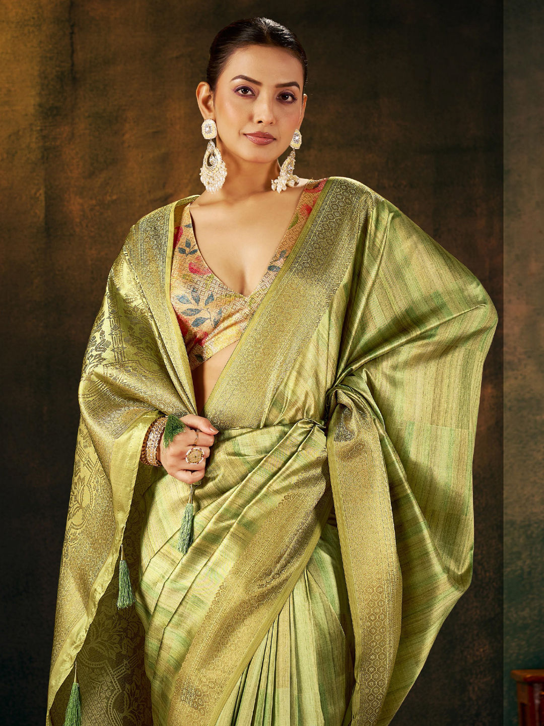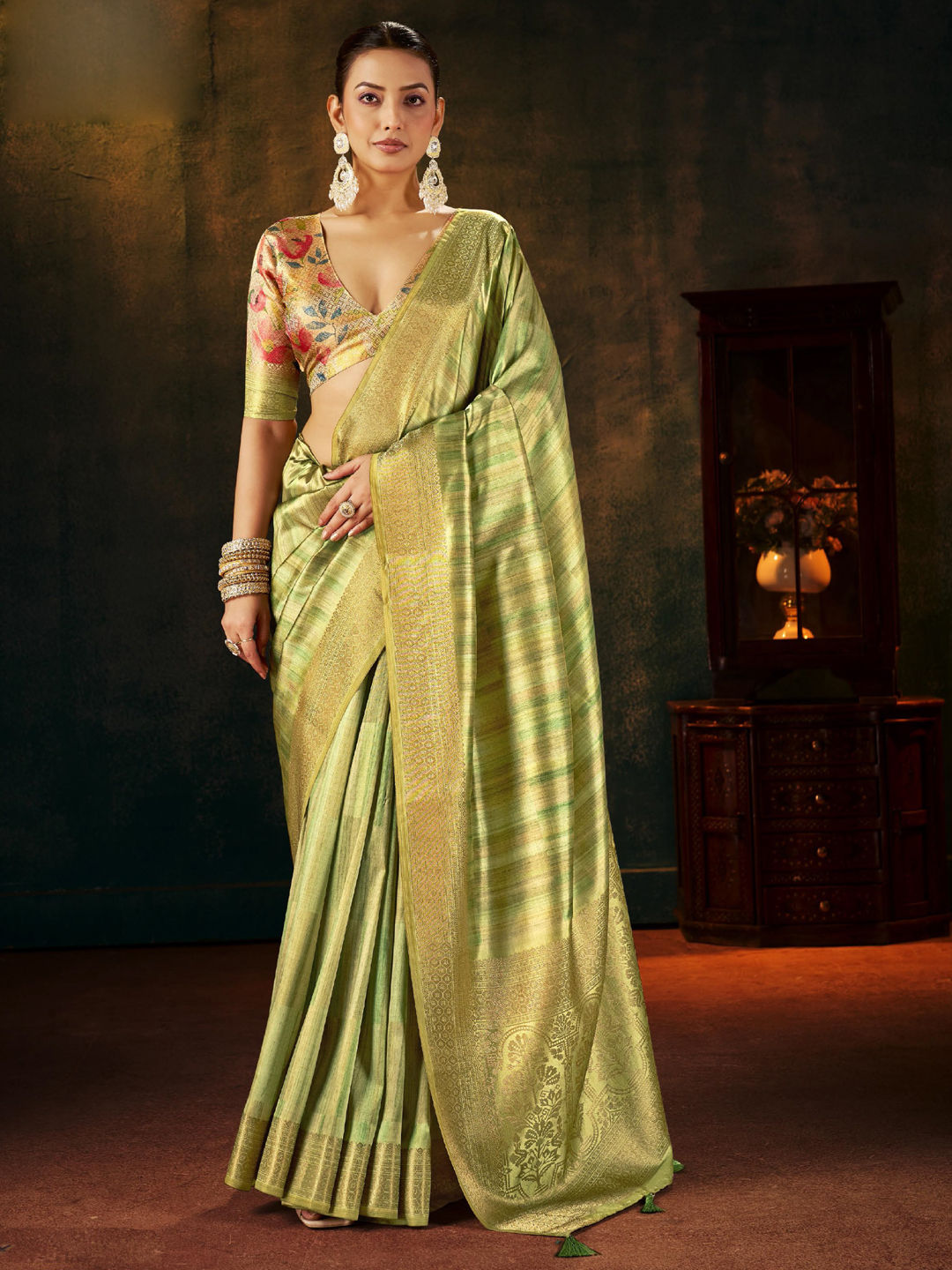 Silk Party Wear Saree in Green with Weaving work