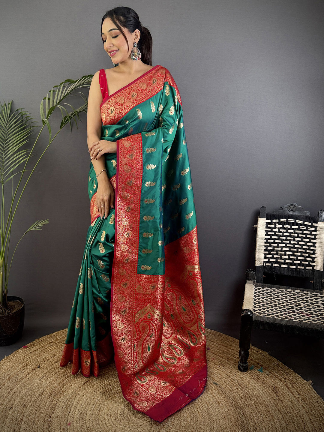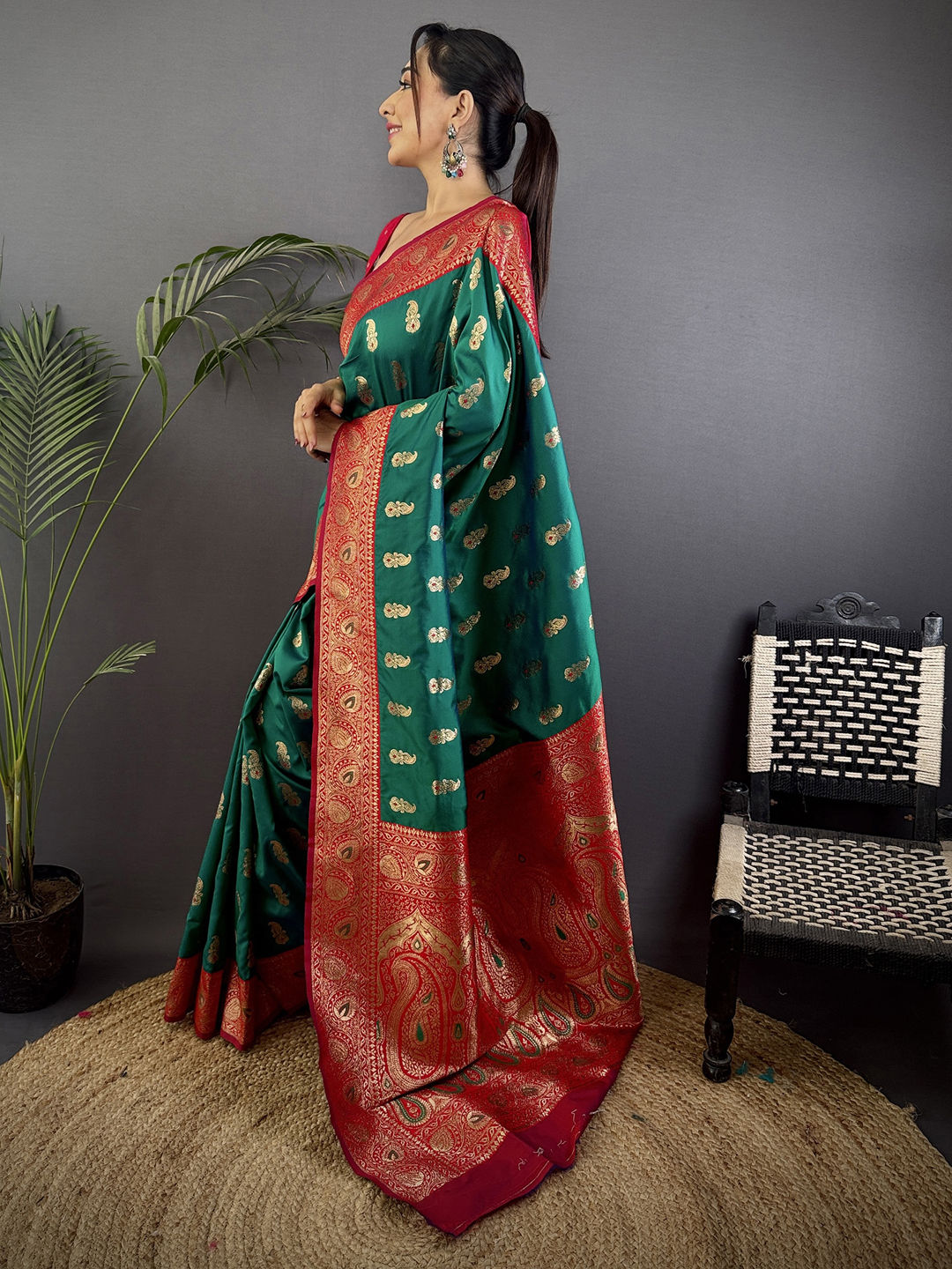in Green with Weaving work