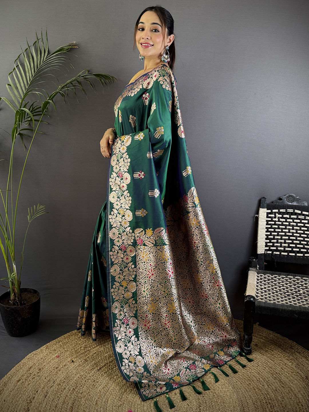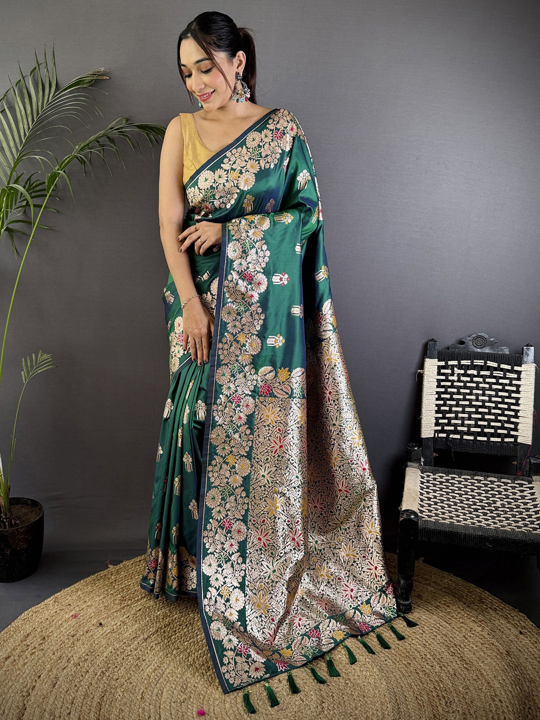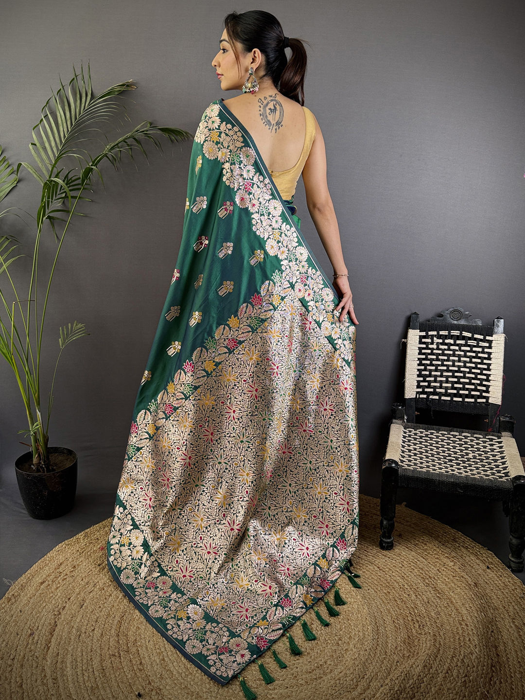 in Green with Weaving work