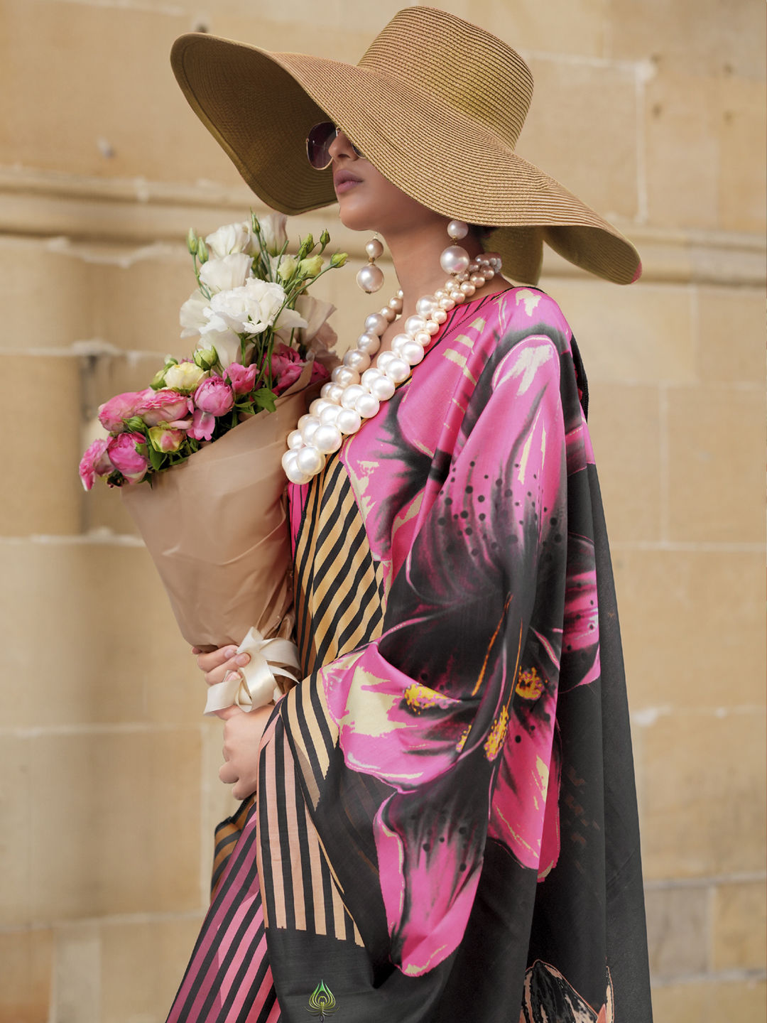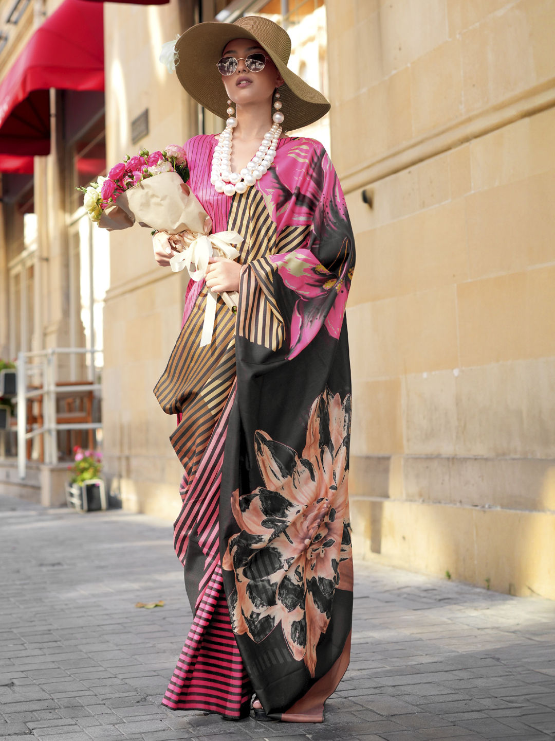 Multicolor color Saree in Silk fabric with Digital Print, Floral work