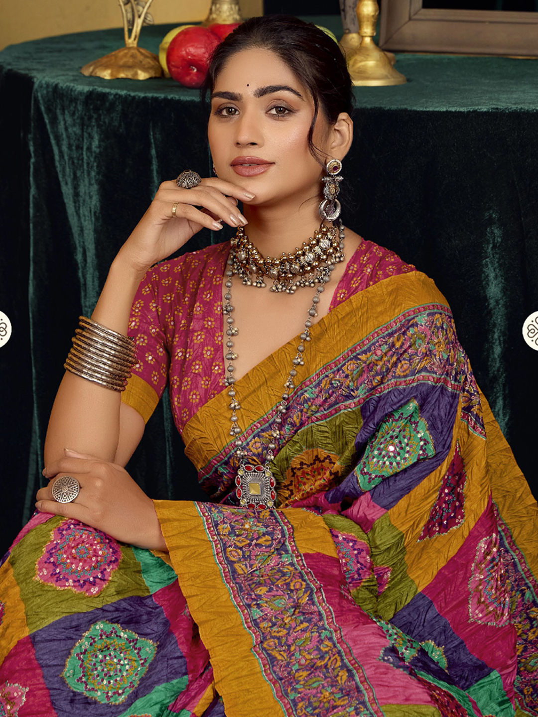 Multicolor color Saree in Silk fabric with Embroidered, Printed, Sequence, Thread work