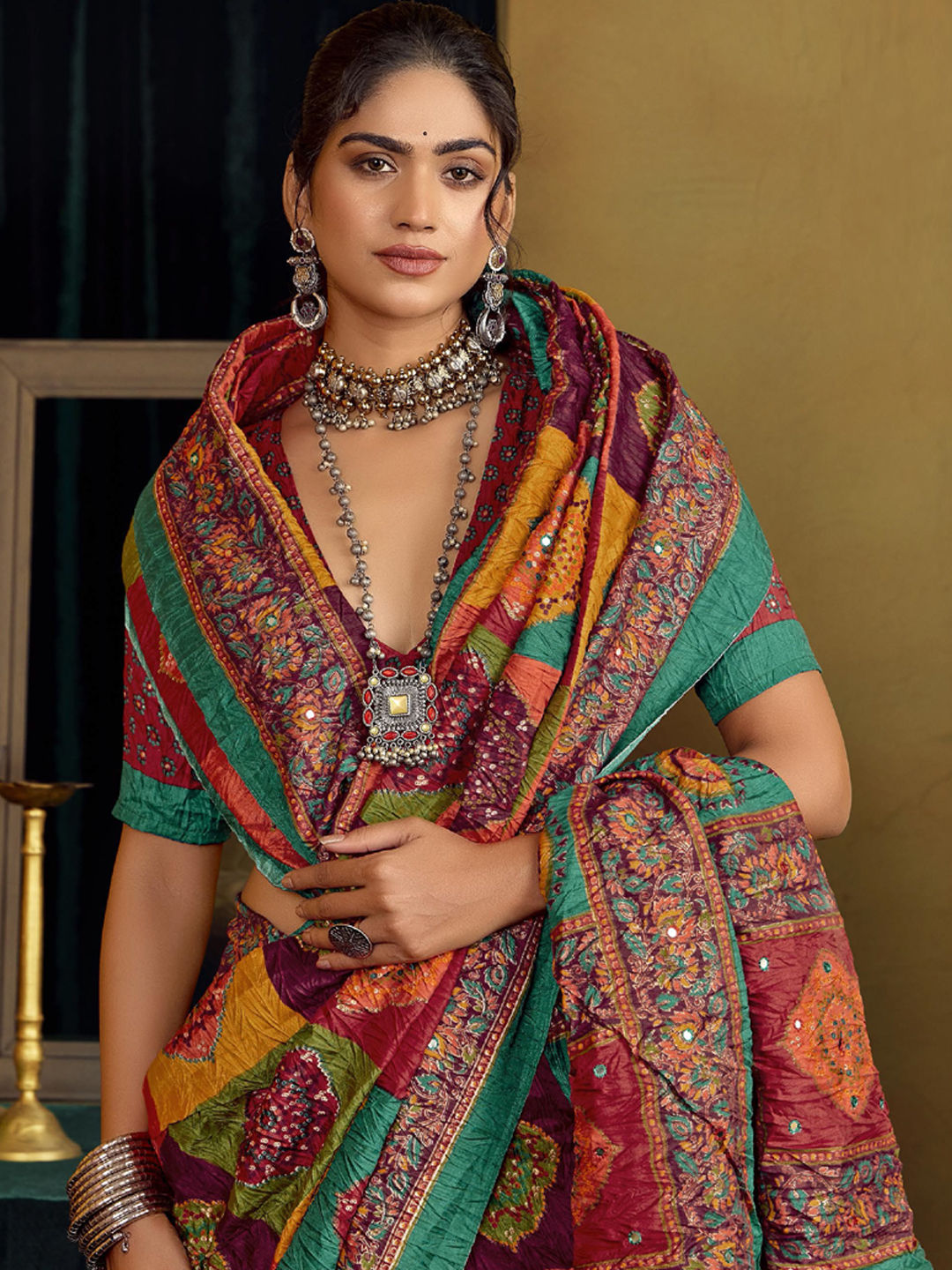 Silk Festive Saree in Multicolor with Embroidered work