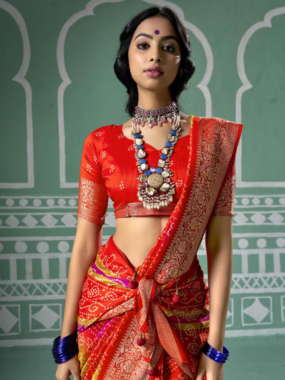in Orange with Bandhej work