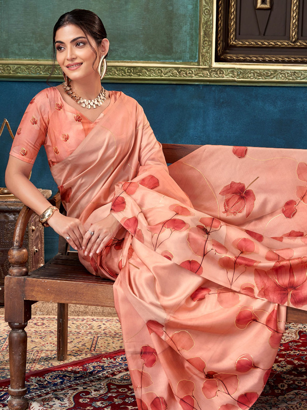 Pink and Majenta color Saree in Silk fabric with Floral, Printed work