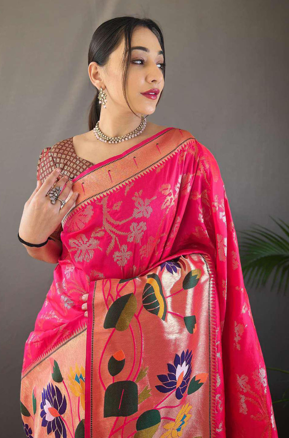 Pink and Majenta color Saree in Silk fabric with Printed, Weaving work
