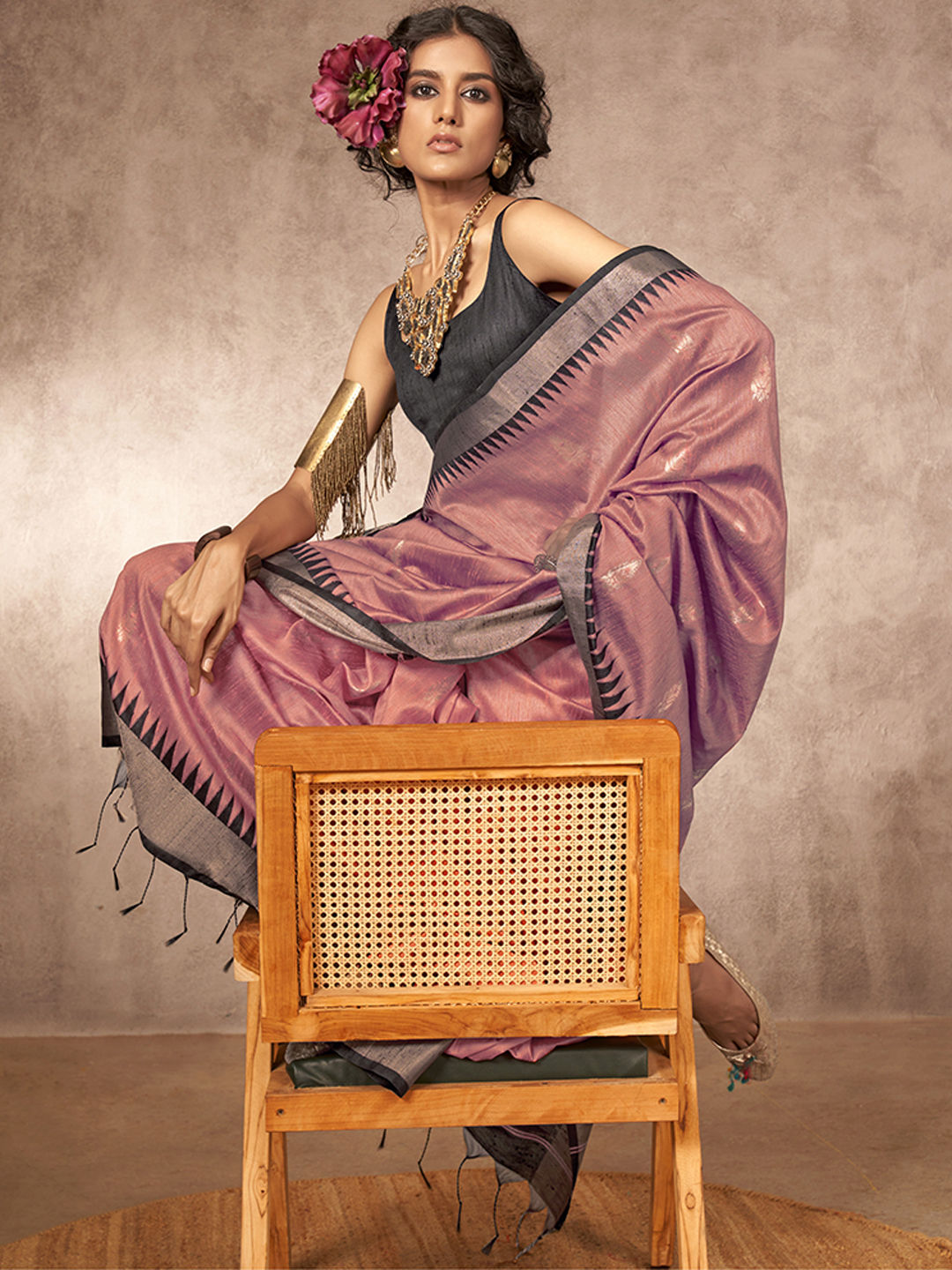 Pink and Majenta color Saree in Silk fabric with Weaving work