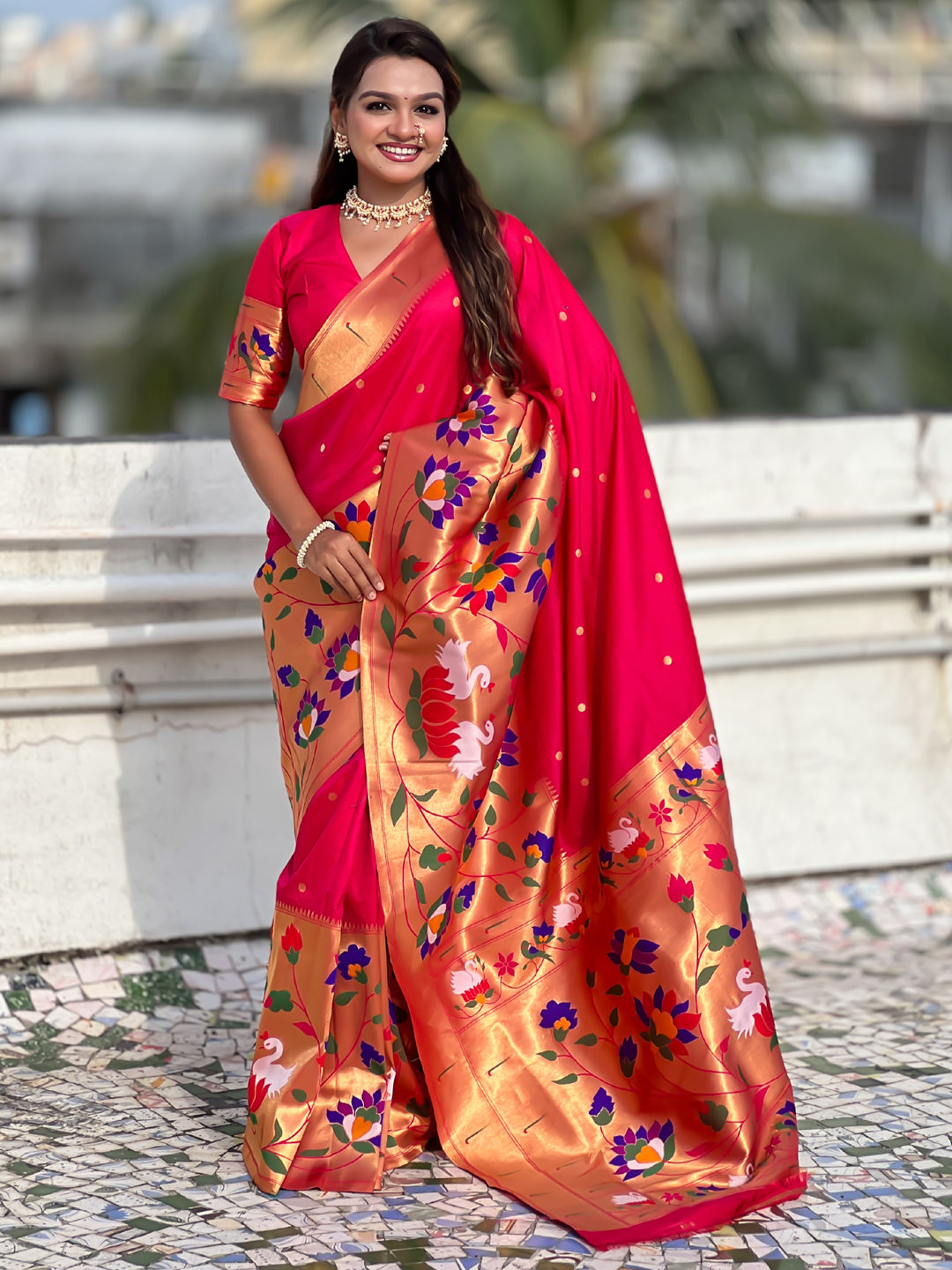 in Pink and Majenta with Weaving work