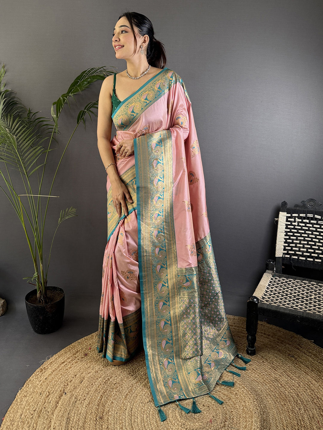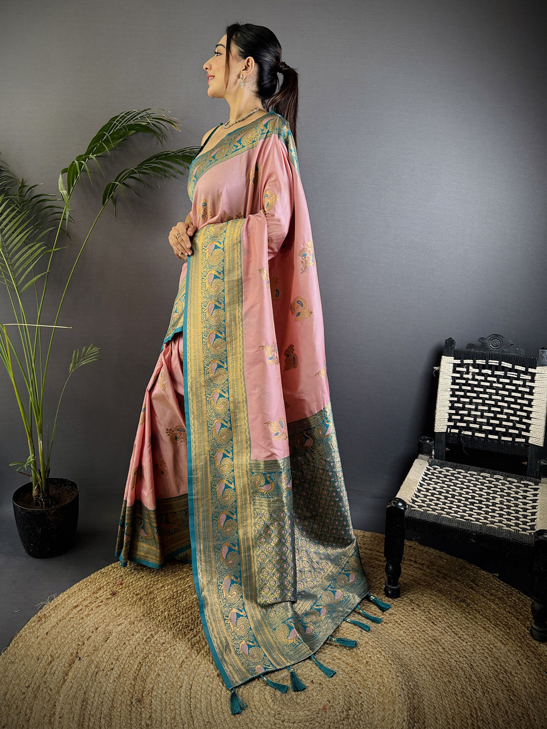 in Pink and Majenta with Weaving work
