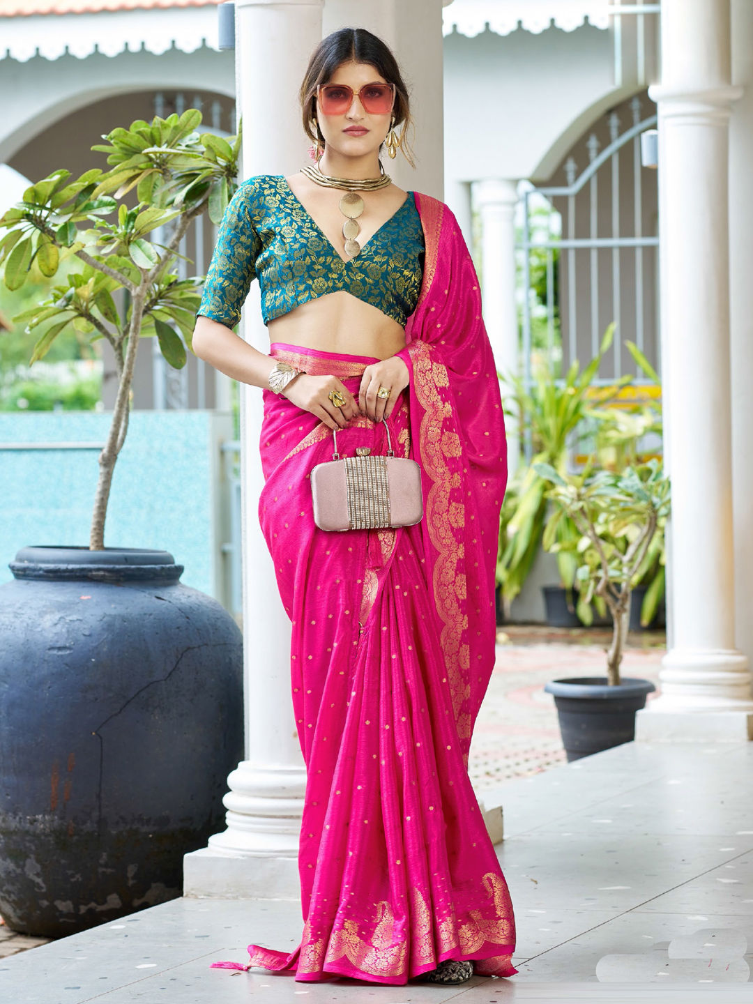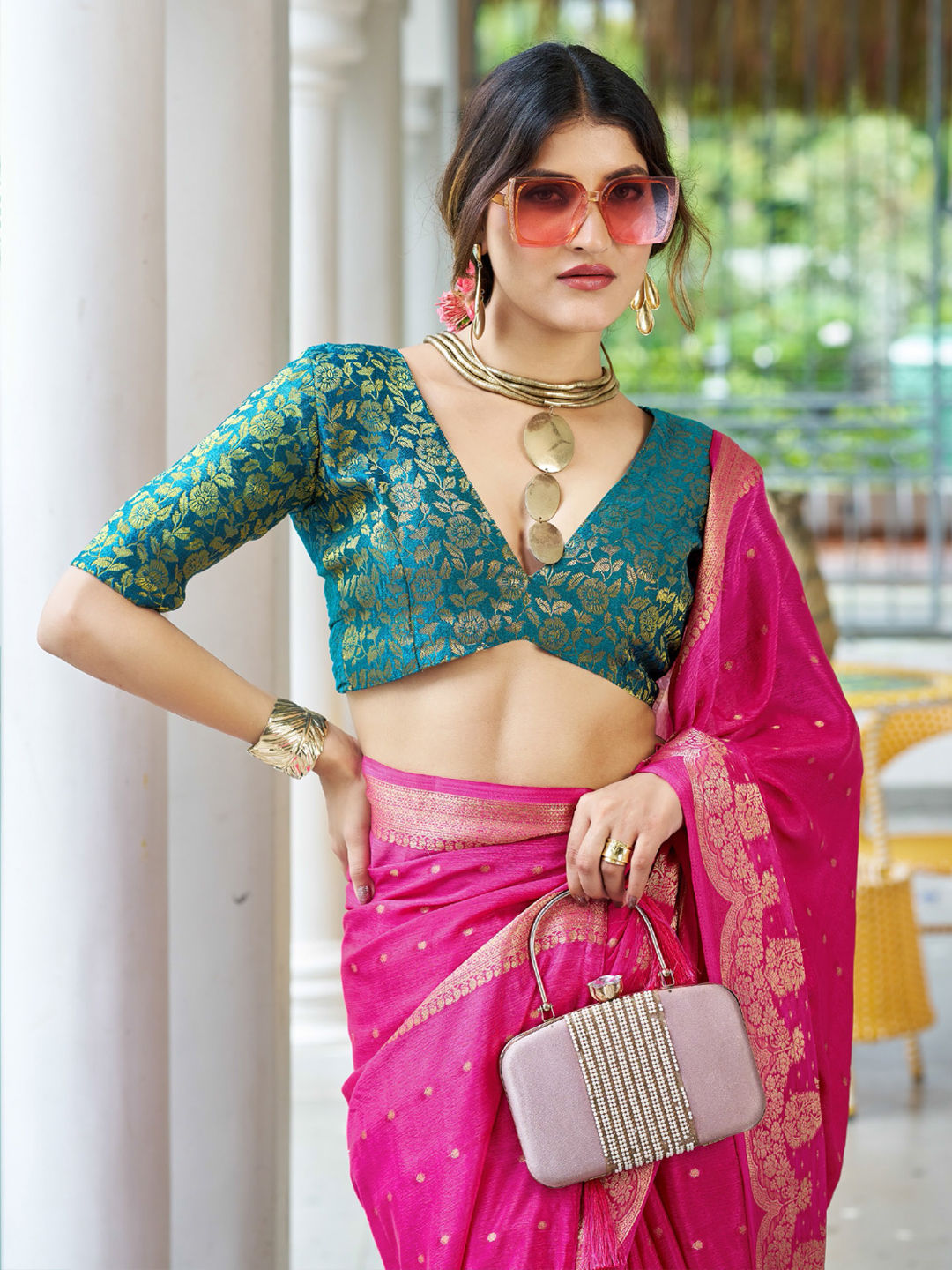 Pink and Majenta color Saree in Silk fabric with Weaving, Zari work