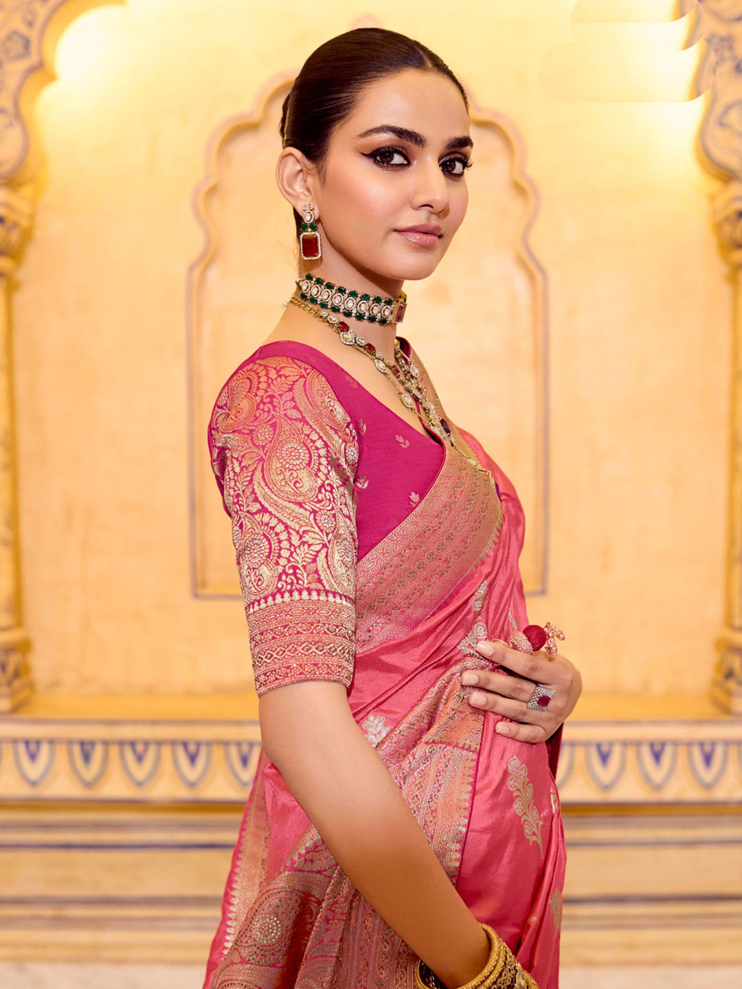Silk Wedding Saree in Pink and Majenta with Weaving work