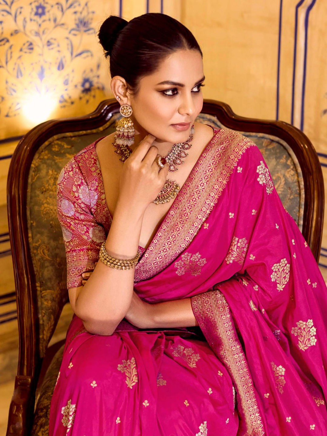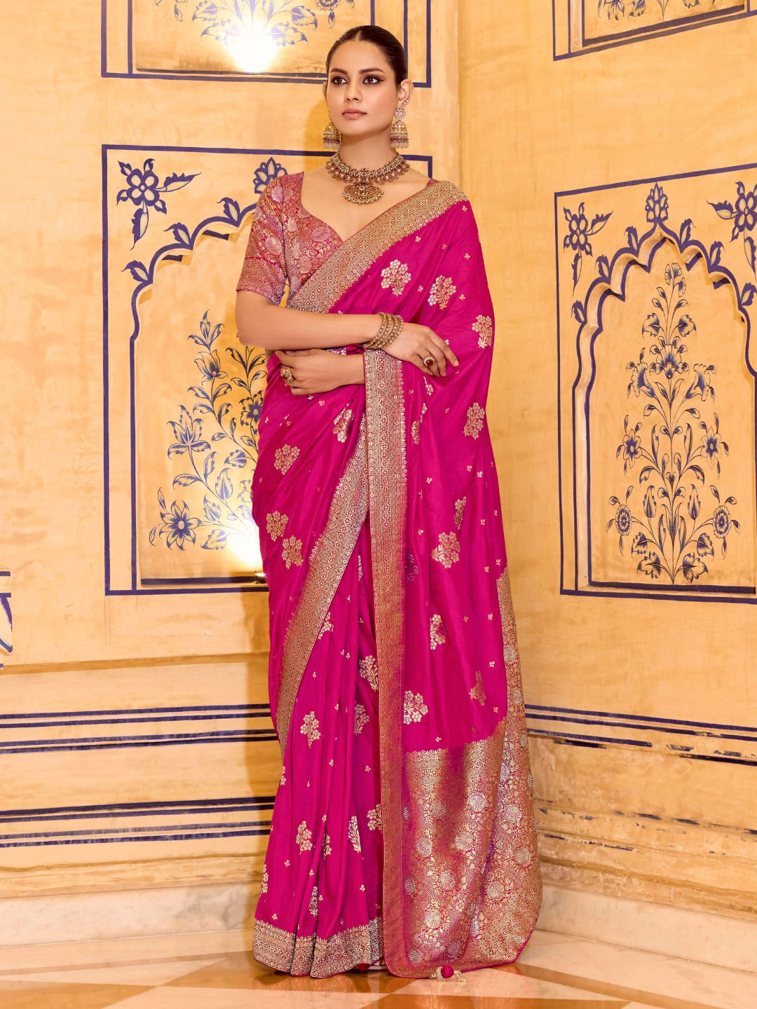 Silk Wedding Saree in Pink and Majenta with Weaving work