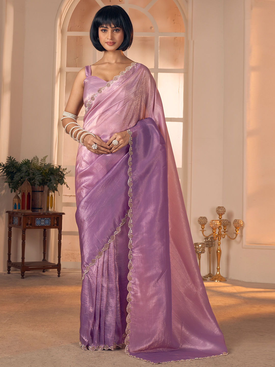 Silk Traditional Saree in Pink and Majenta with Zircon work