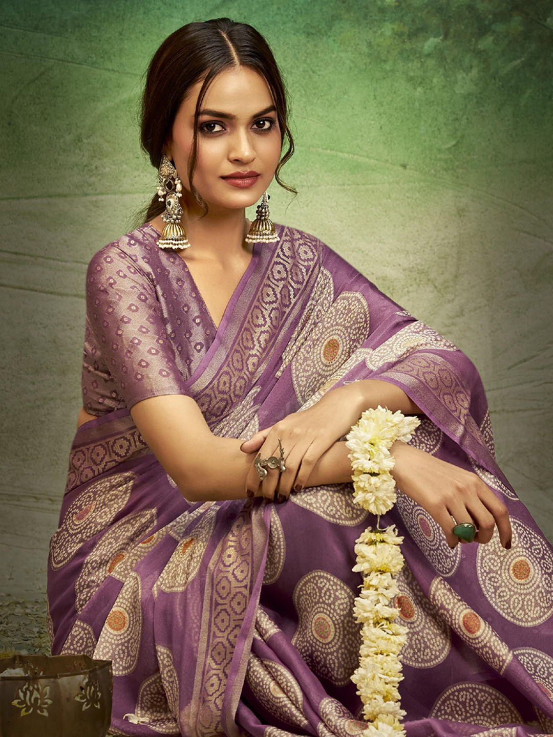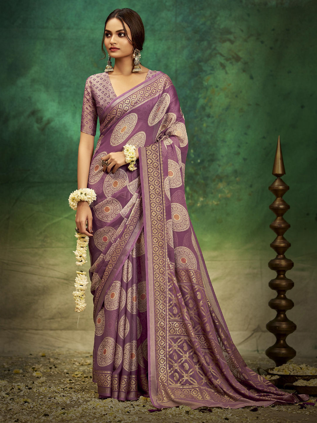 Purple and Violet color Saree in Silk fabric with Bandhej, Printed, Weaving work