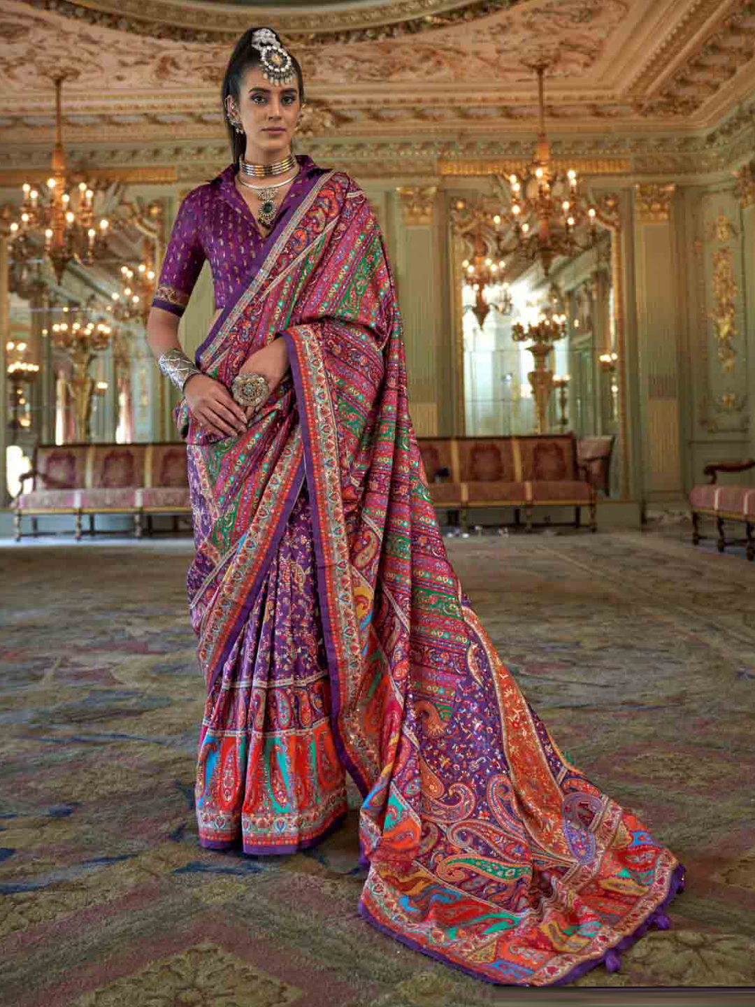 in Purple and Violet with Printed work