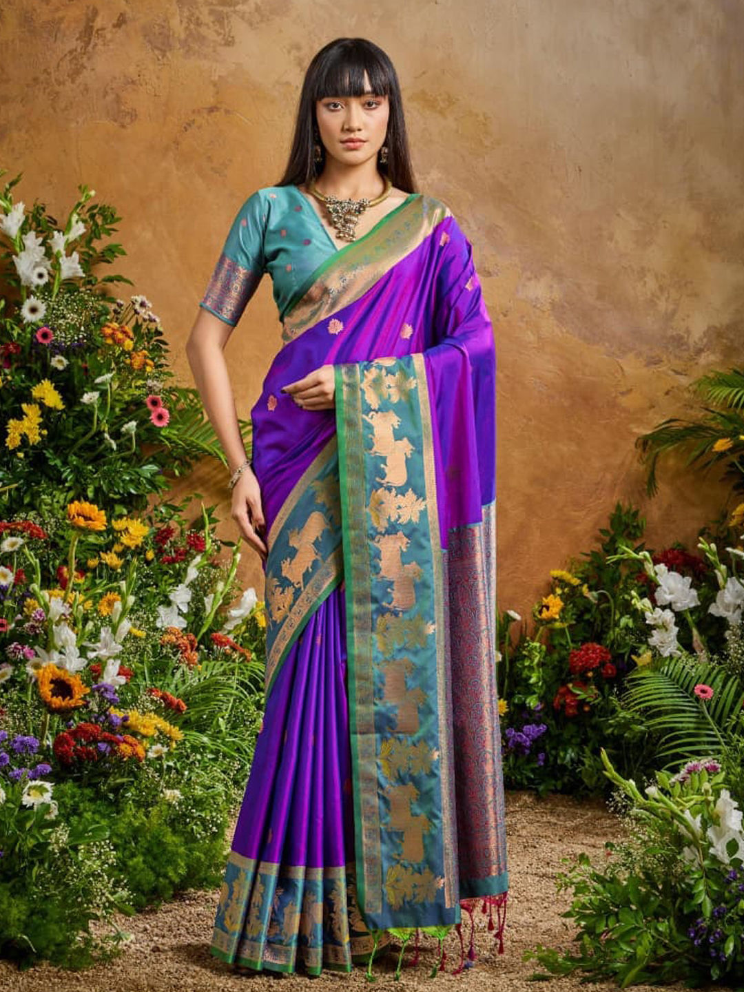 Purple and Violet color Saree in Silk fabric with Weaving work