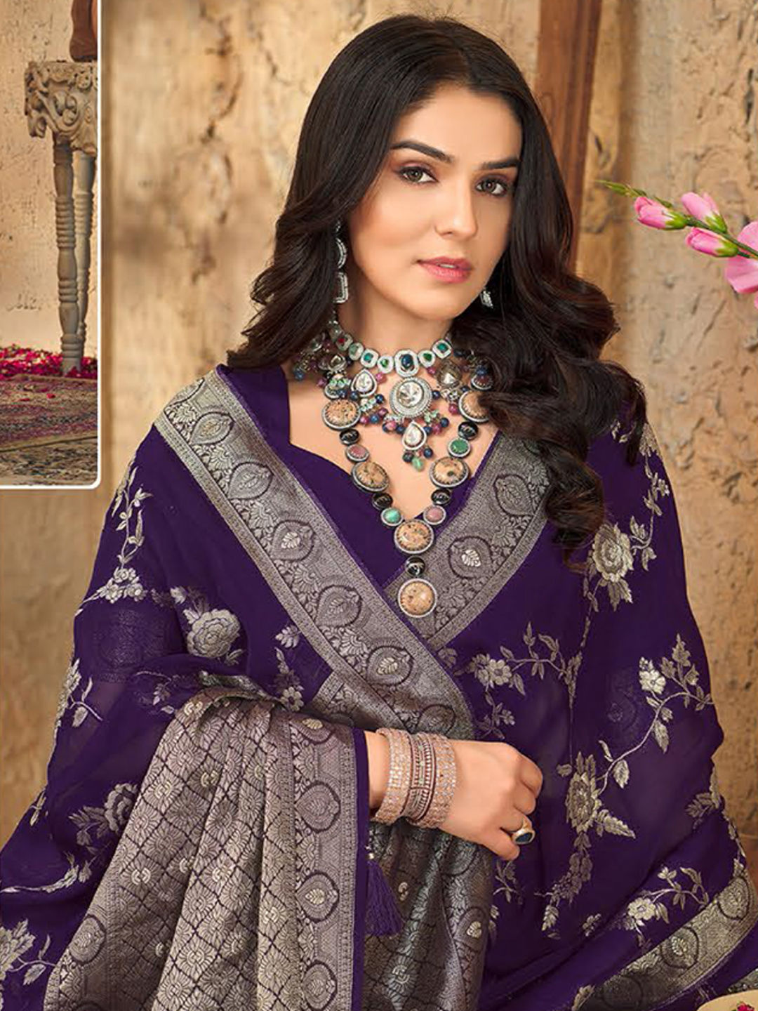 in Purple and Violet with Weaving work