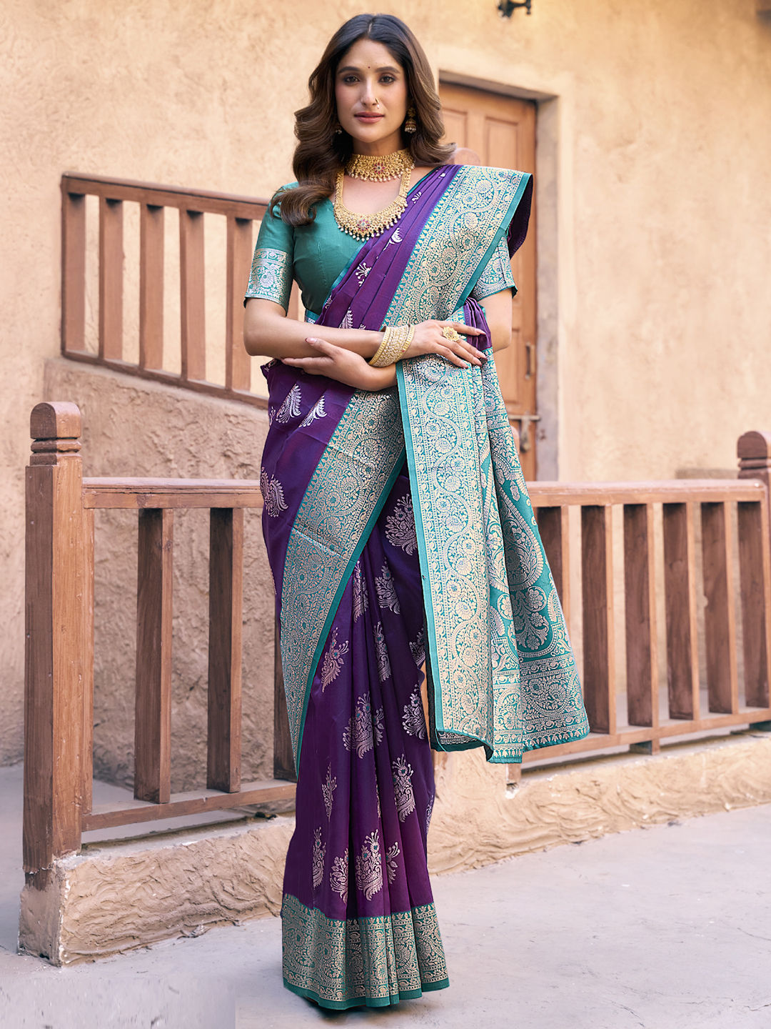 Purple and Violet color Saree in Silk fabric with Weaving, Zari work
