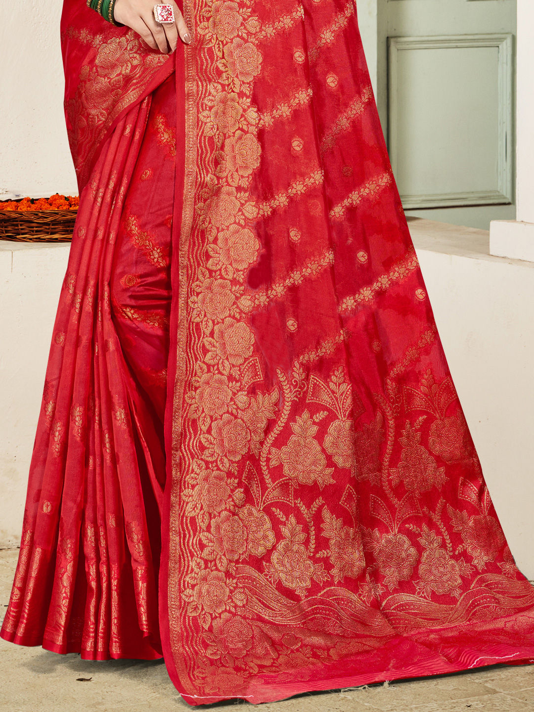 Red and Maroon color Saree in Silk fabric with Weaving, Zari work
