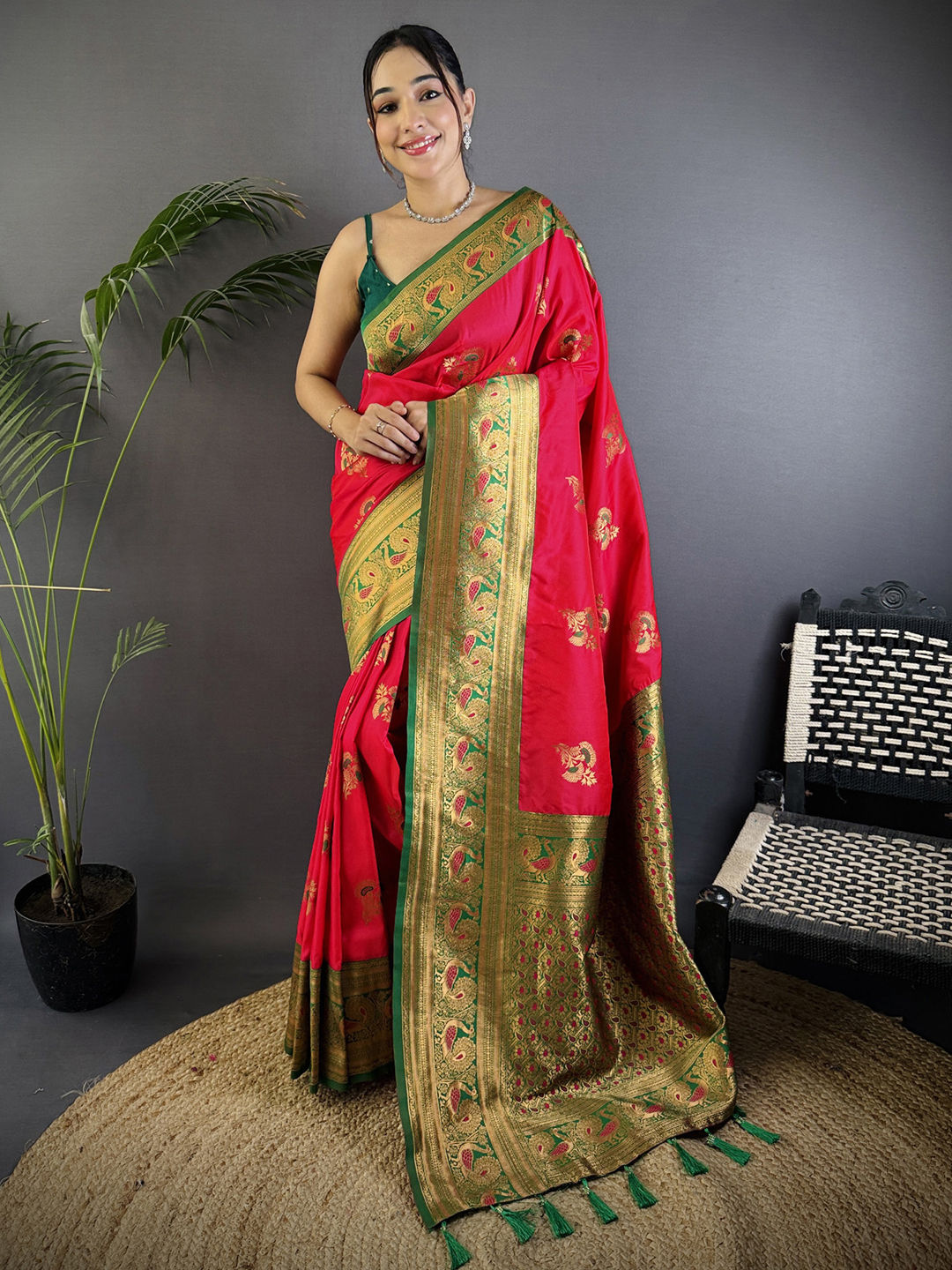 Silk Festive Saree in Pink and Majenta with Weaving work