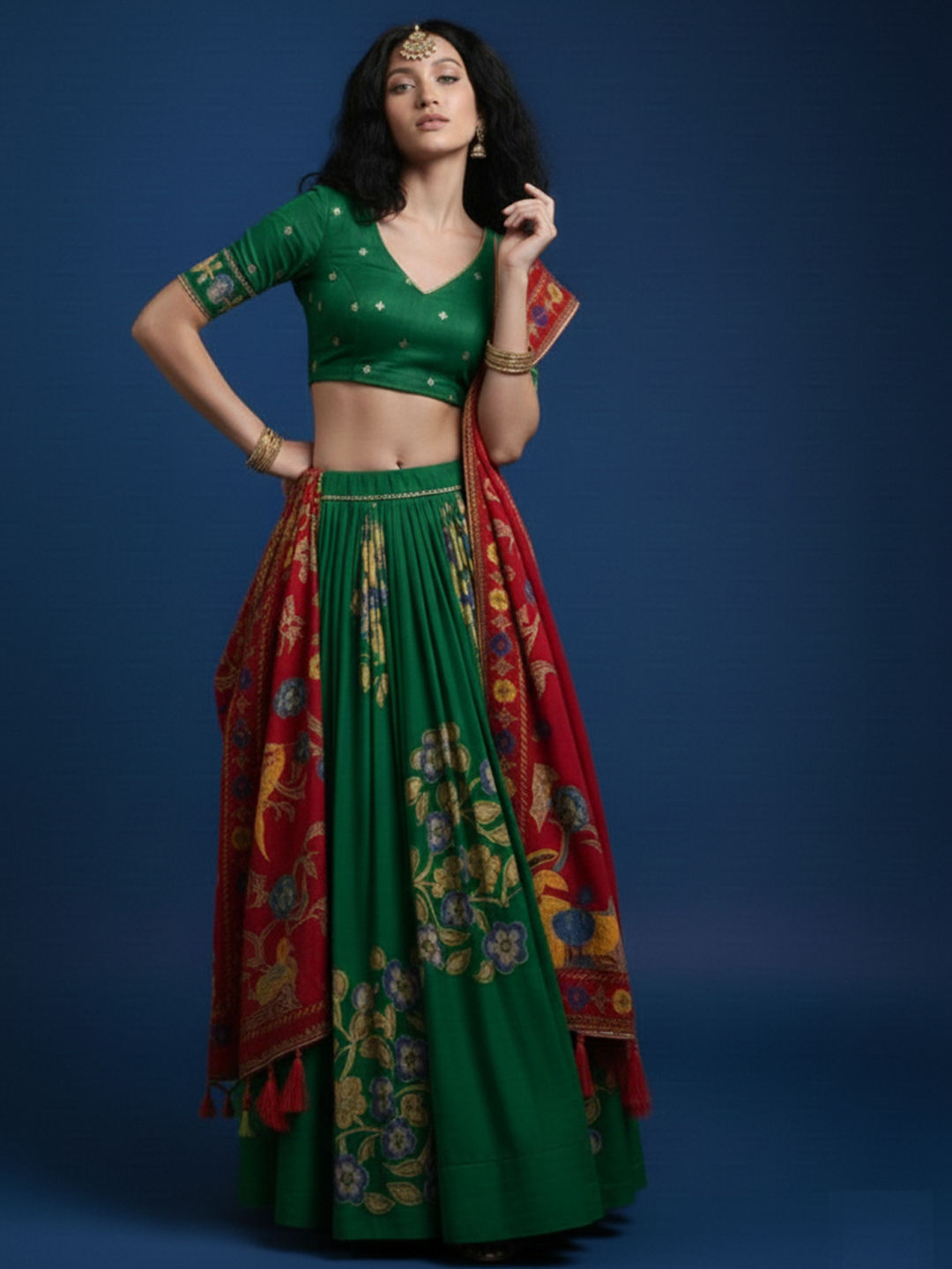 Silk Reception Lehenga in Red and Maroon with Foil Print work