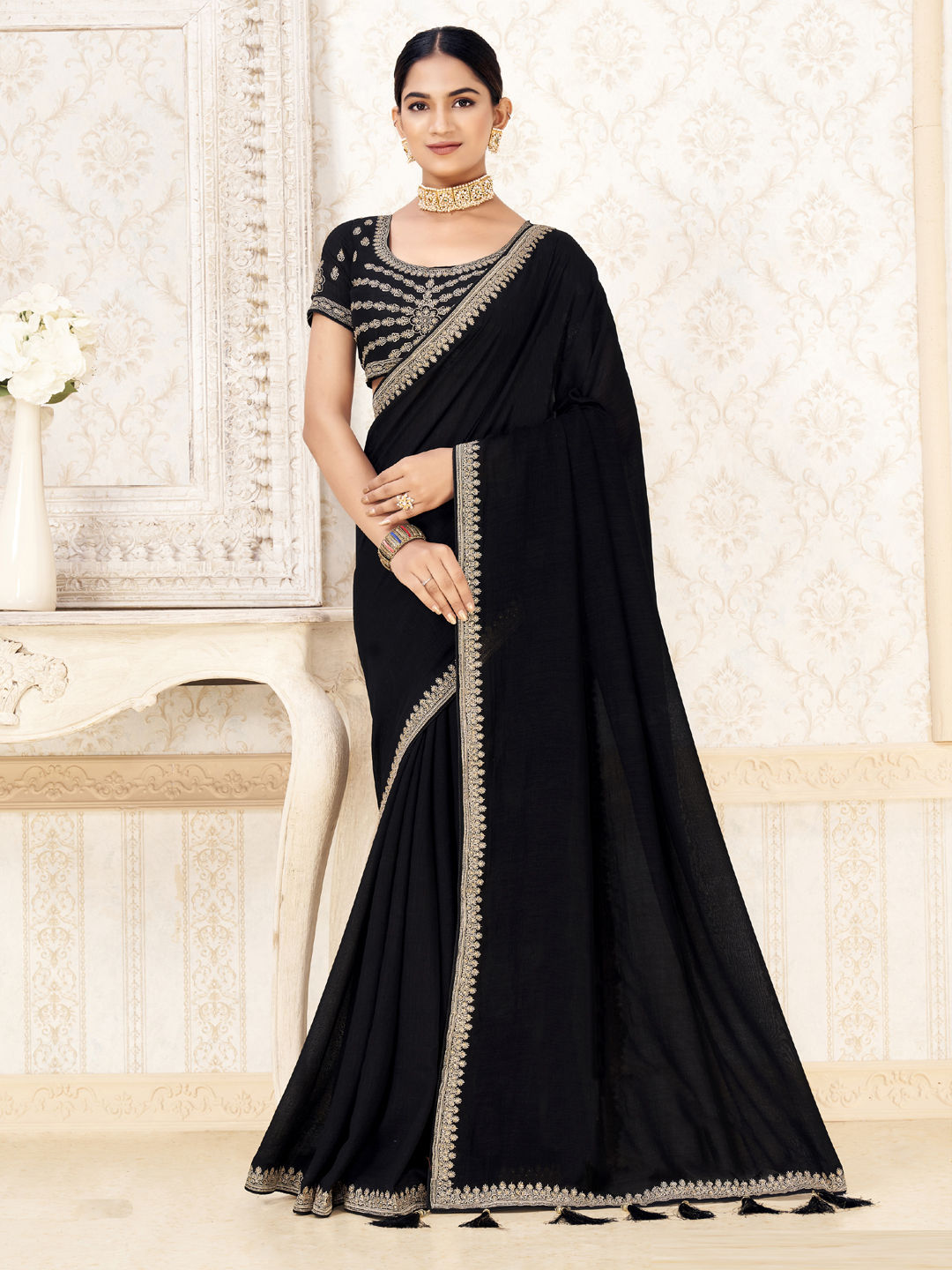 Black and Grey color Saree in Silk fabric with Embroidered, Sequence, Thread, Zari work