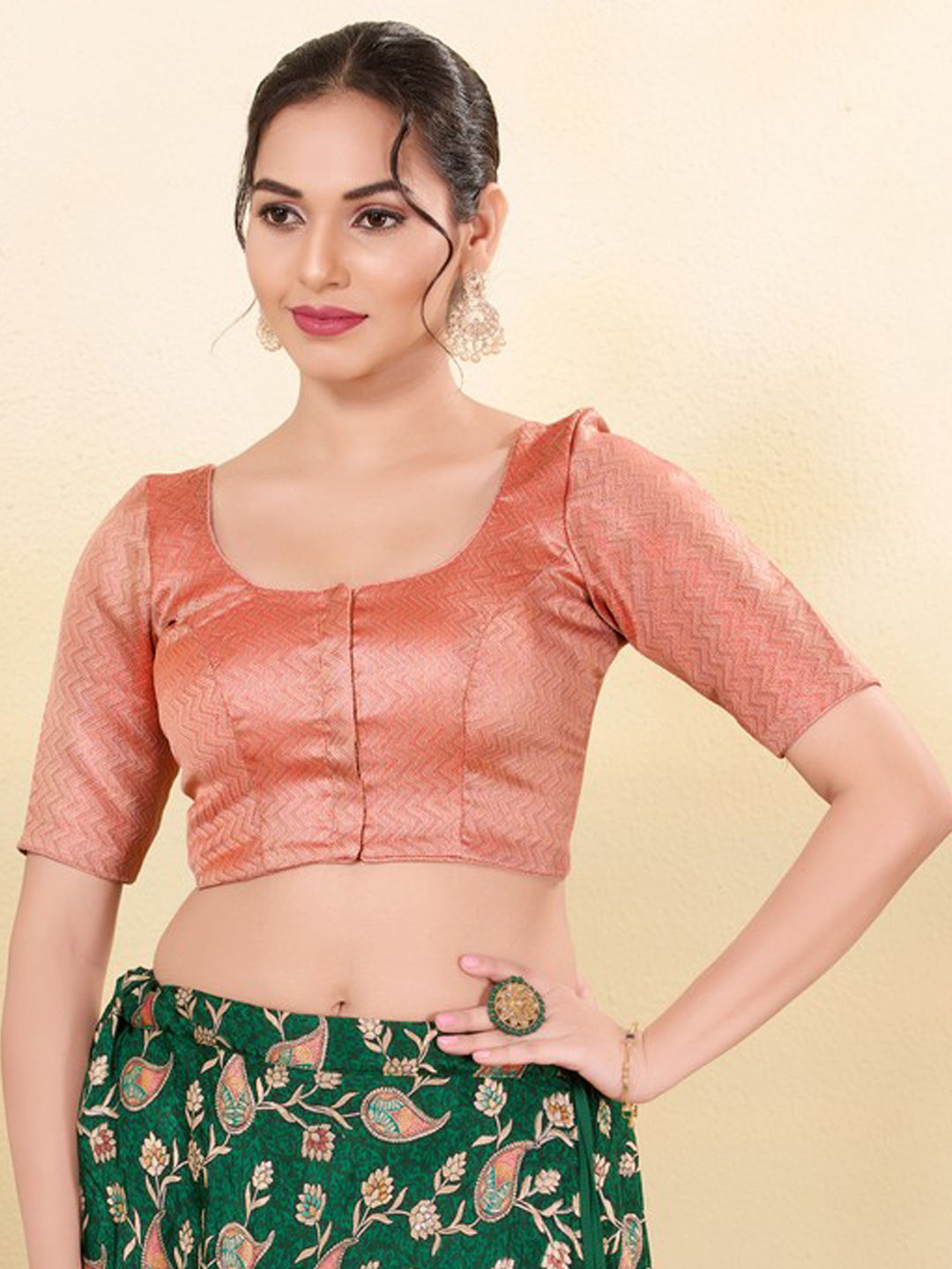 Beige and Brown color Blouse in Silk fabric with Weaving work