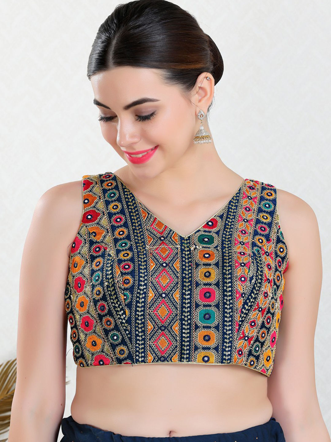 Blue color Blouse in Silk fabric with Embroidered, Sequence, Thread work