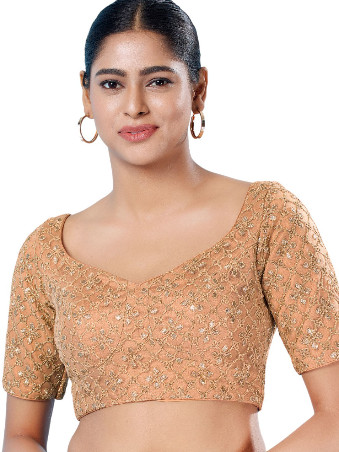 Tissue Party Wear Blouse in Gold with Sequence work